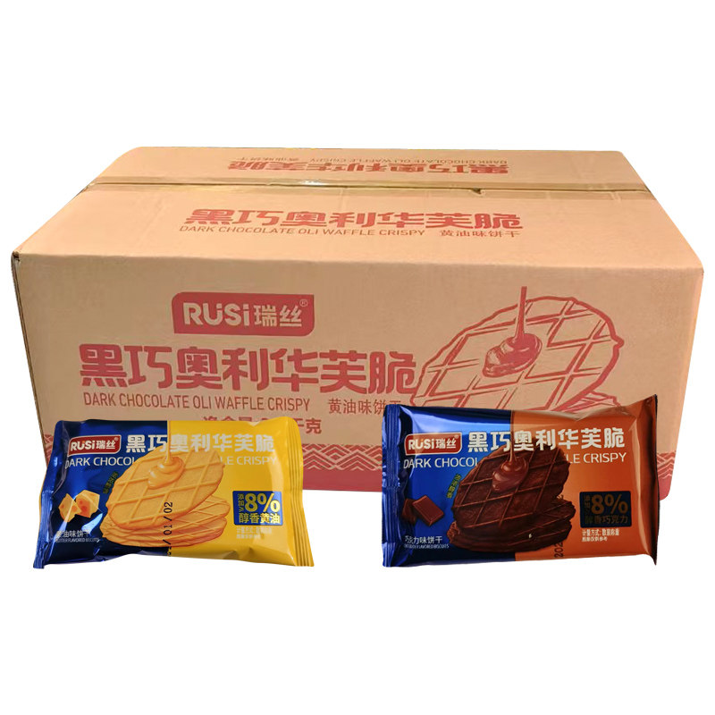 📚 瑞丝黑巧奥利华夫脆两种口味酥脆饼干巧克力味醇香黄油味每箱7斤