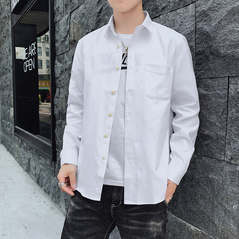 📚 夏天白色休闲衬衫男长袖薄款有口袋商务休闲职业工装村杉衣衬衣土