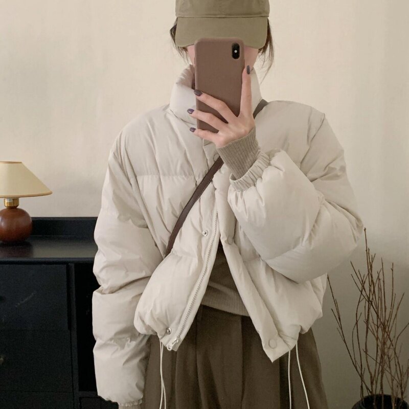 📚 2025冬季奶黄色短款羽绒服女加厚奶呼呼小个子超好看白鸭绒面包服