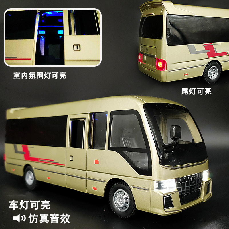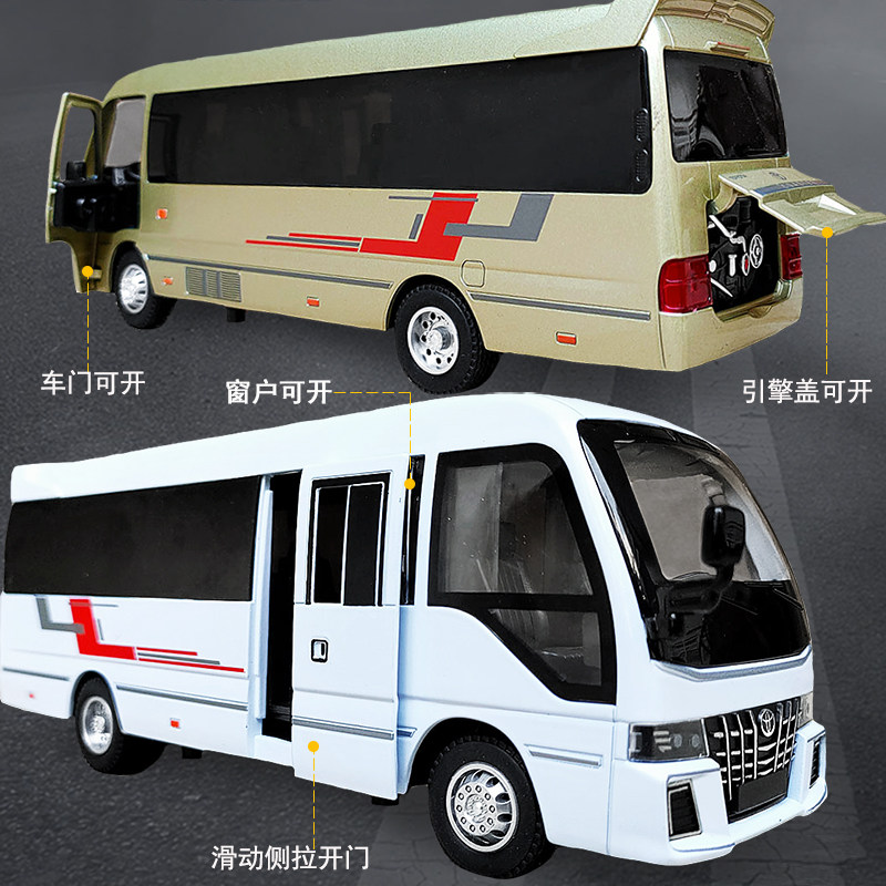 📚 合金丰田考斯特巴士大巴车公交车仿真公共汽车模型儿童玩具车男孩