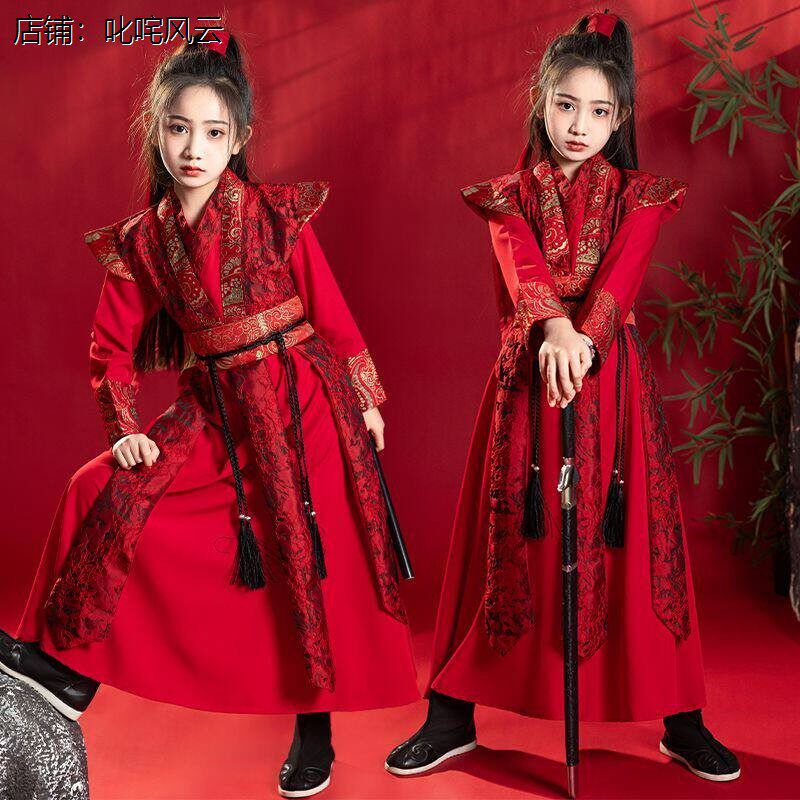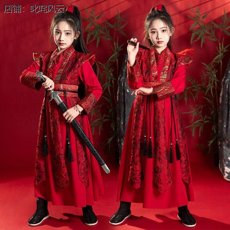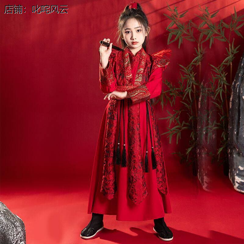 📚 儿童汉服女童古装花木兰侠客仙侠古风女孩演出服cos秋冬连衣袍
