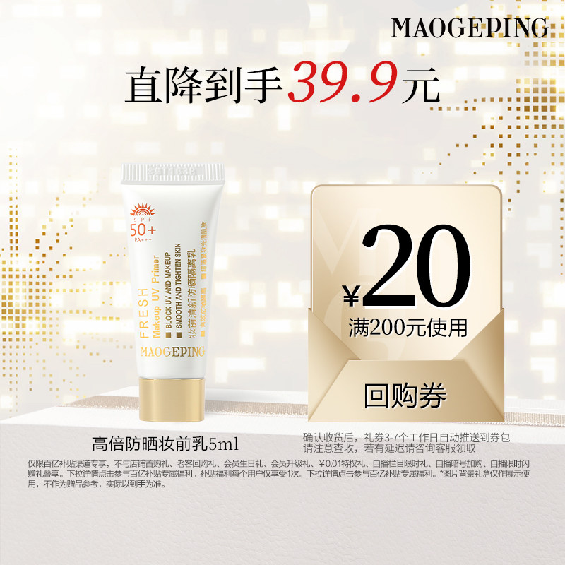 💥种草!【百亿补贴】毛戈平妆前乳清爽防晒隔离乳,让你告别油腻,轻松上妆💃