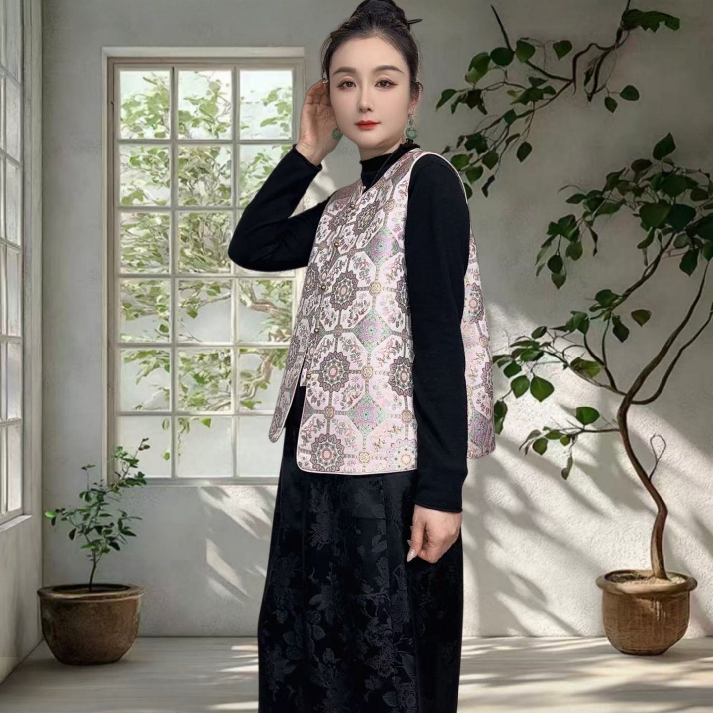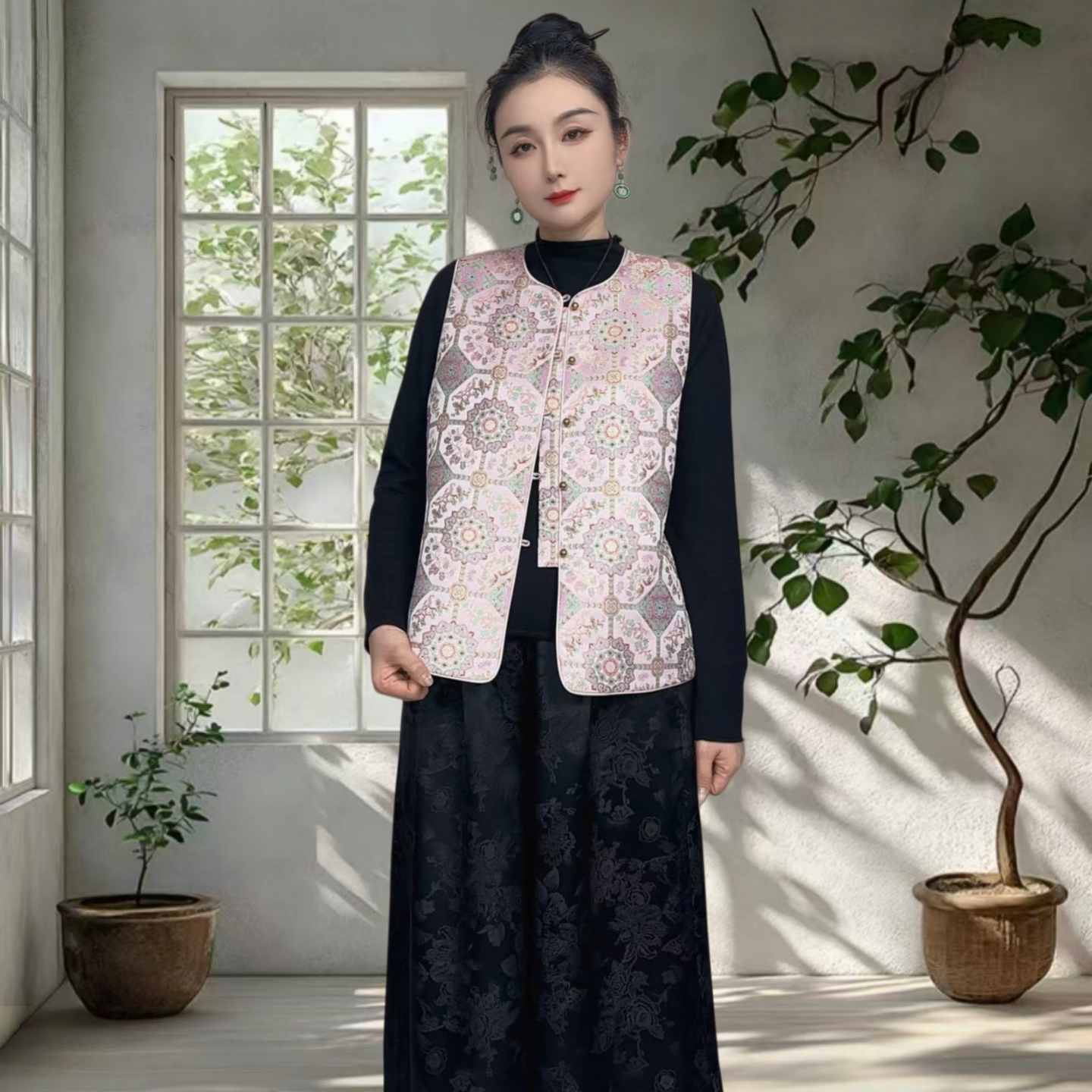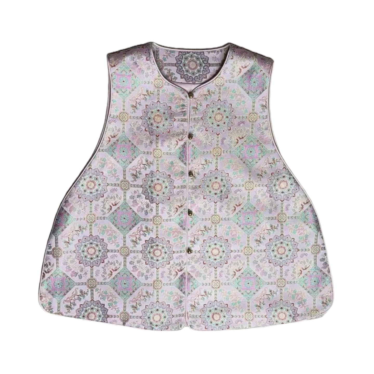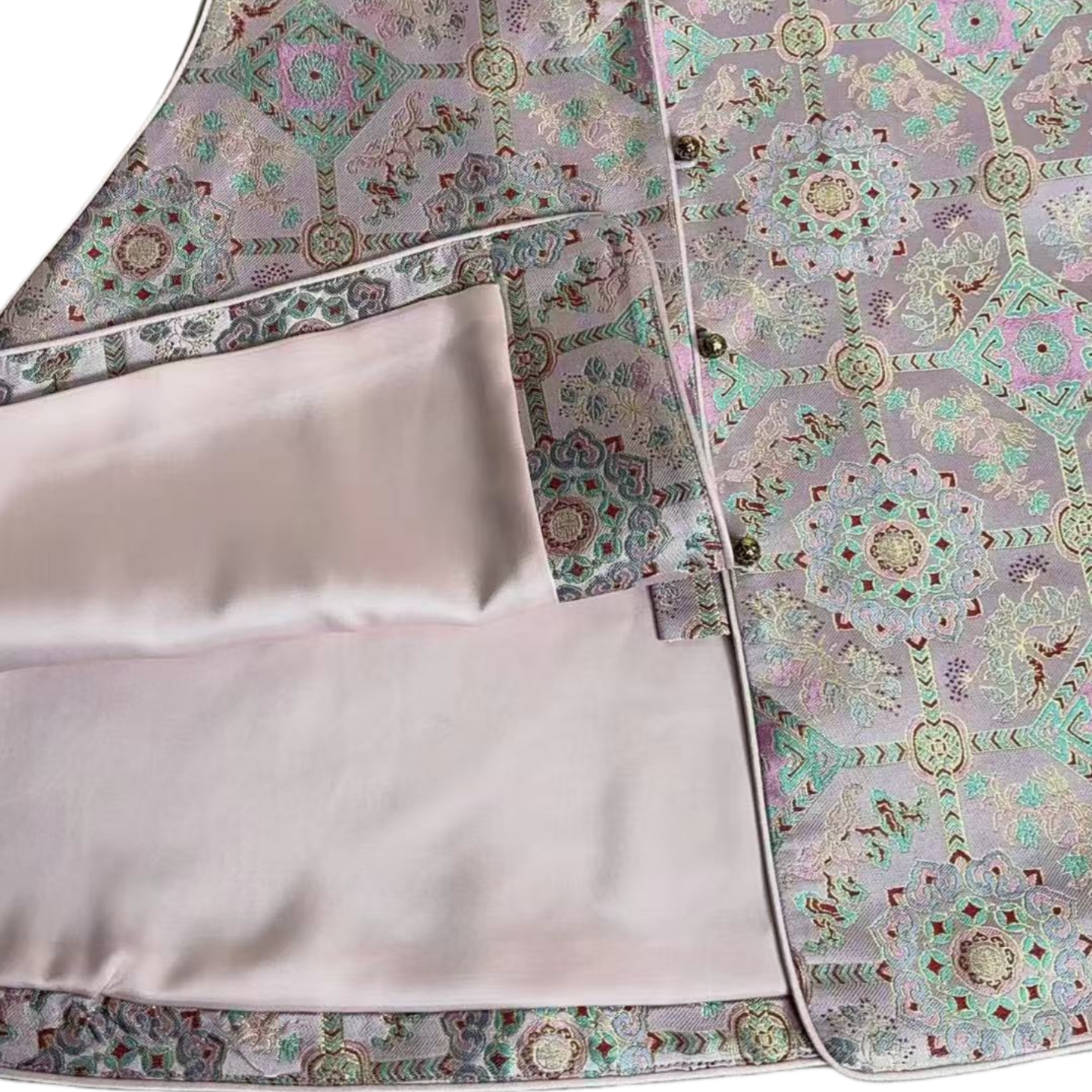 📚 沁月新中式国风100%桑蚕丝宋锦粉色仙草A字版真丝马甲2026春新款