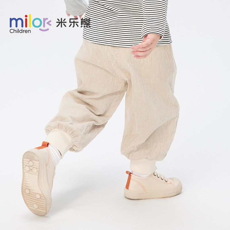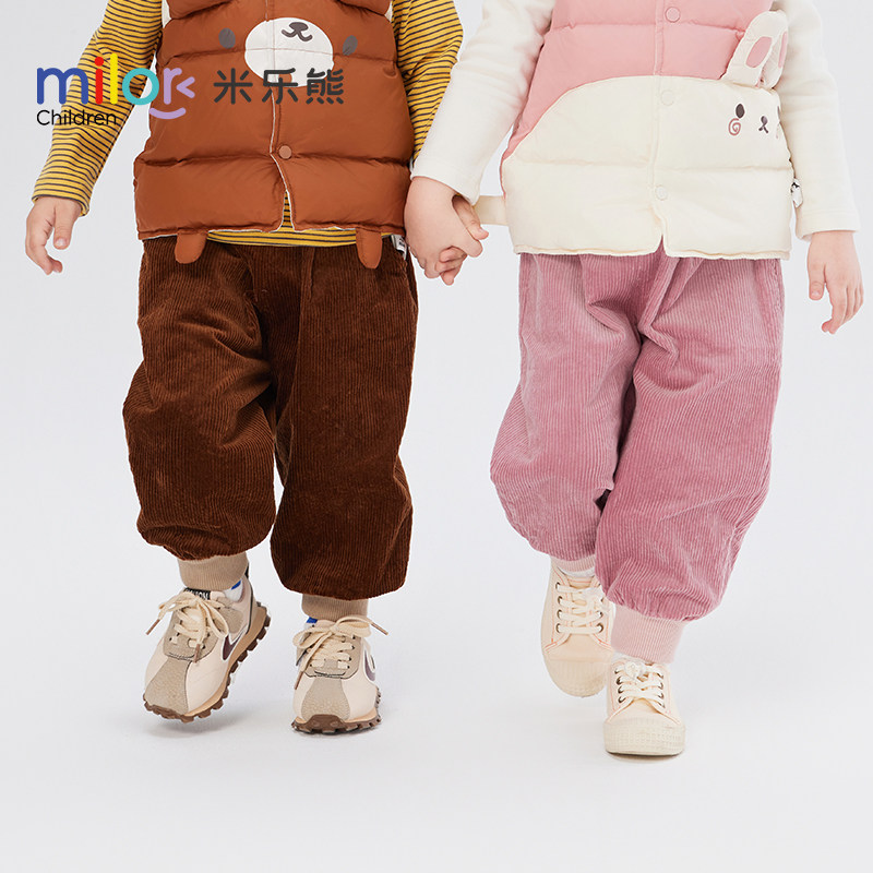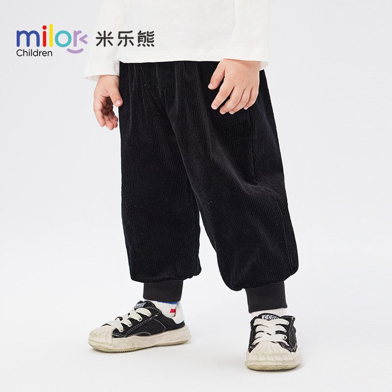 📚 米乐熊灯芯绒裤子女童秋冬款长裤男童宝宝秋装黑色儿童休闲童装