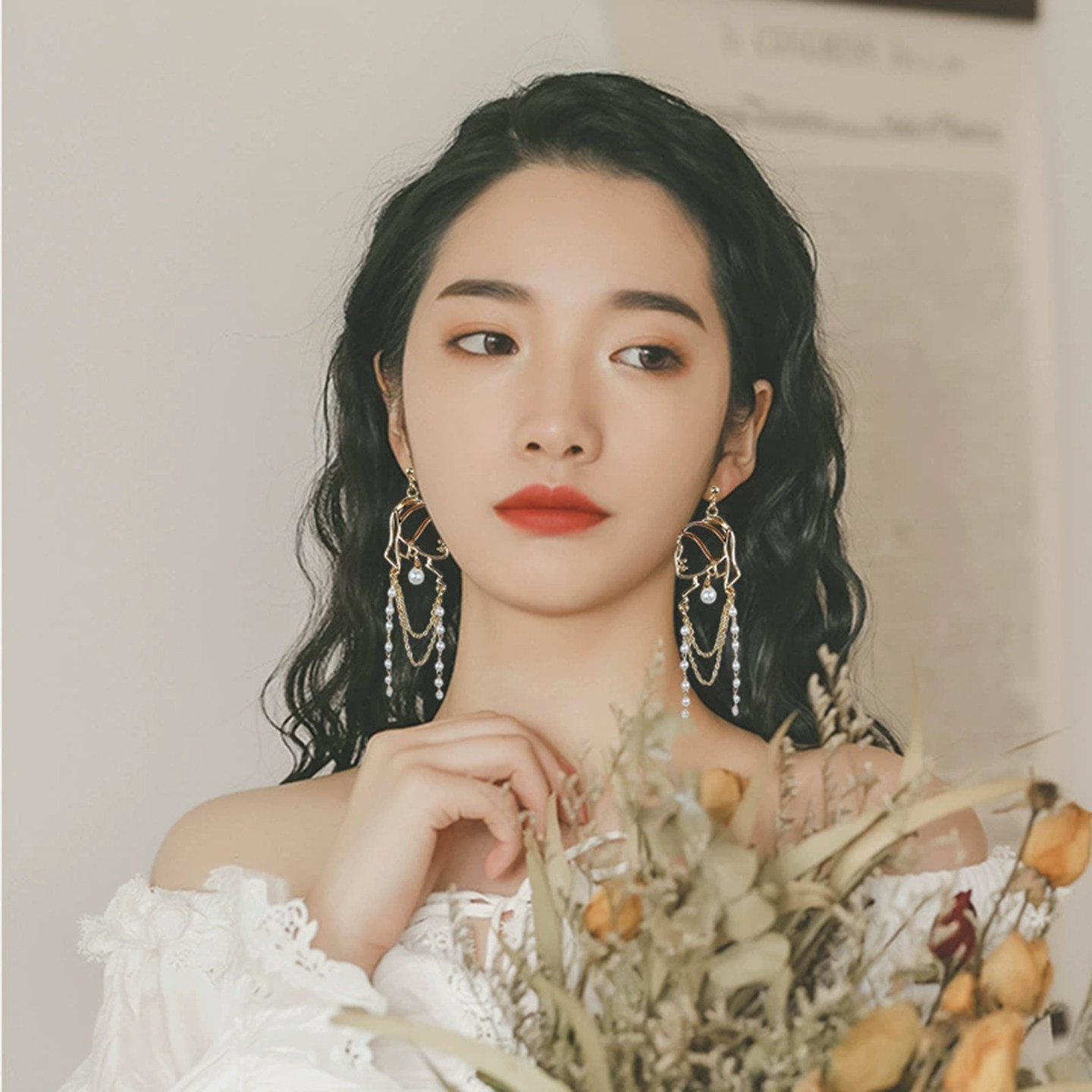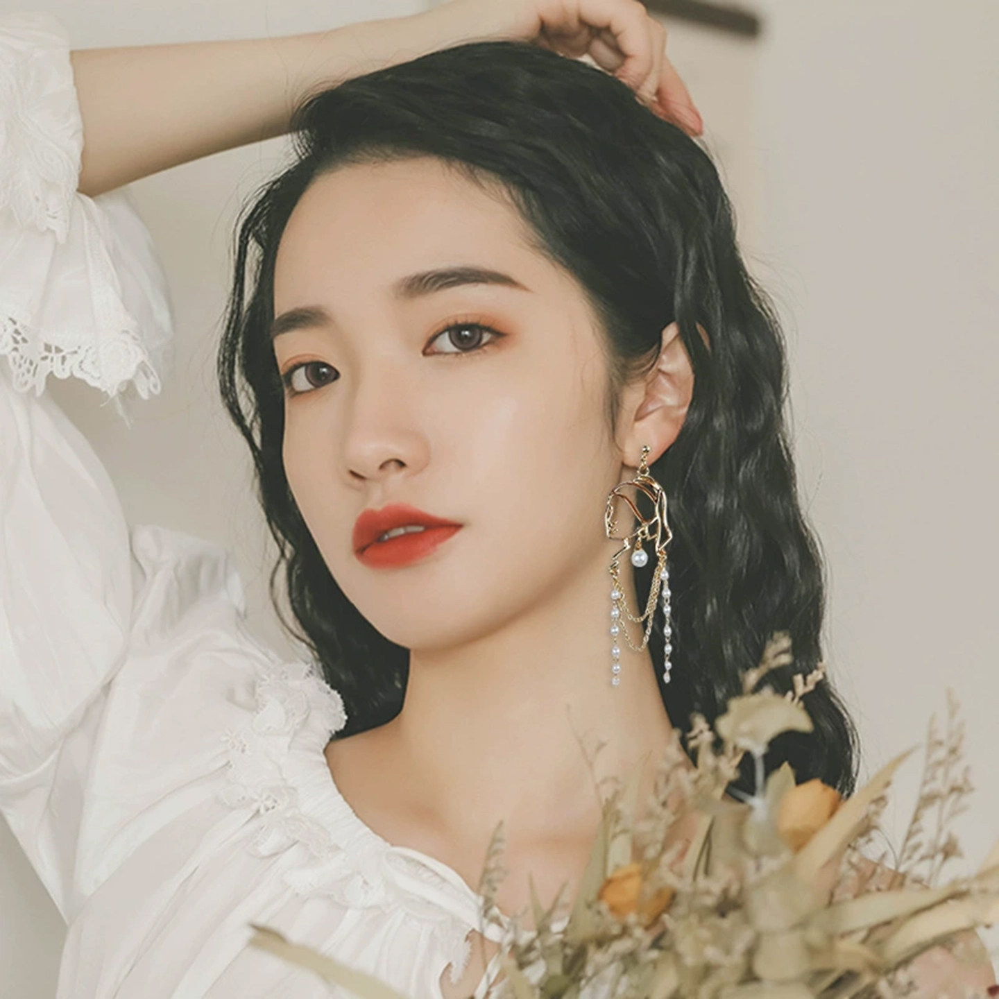 📚 大牌耳环欧美夸张长款珍珠小众设计感高大圆脸适合的纯银耳钉耳夹