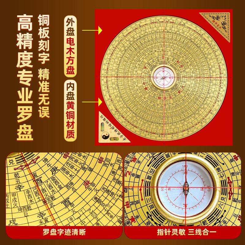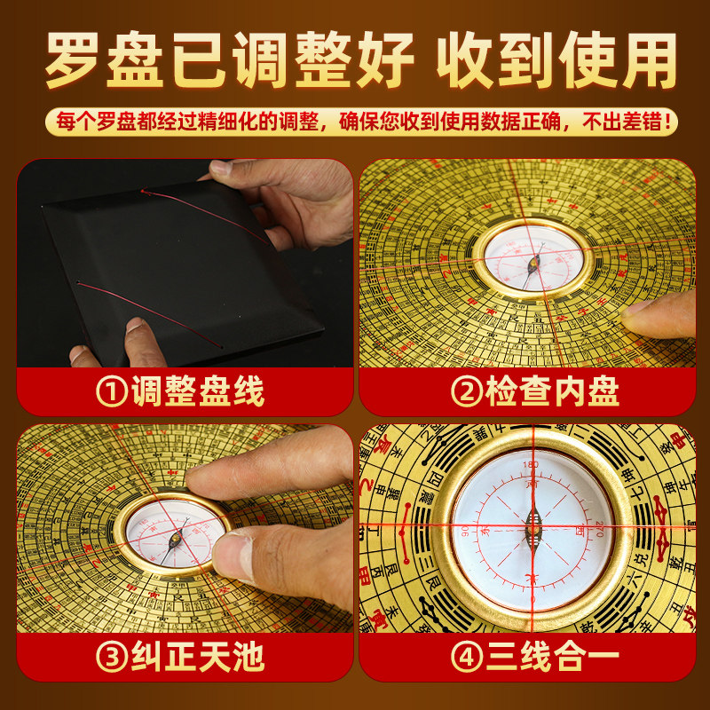 📚 黄铜高精度专业罗盘摆件三元三合综合盘指南针八卦随身精准罗经仪