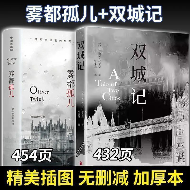 📚 【加厚454页 赠书签】雾都孤儿+双城记 查尔斯狄更斯著作正版无删减中文译本宋兆霖现实主义小学课外阅读世界名著外国文学小说书籍