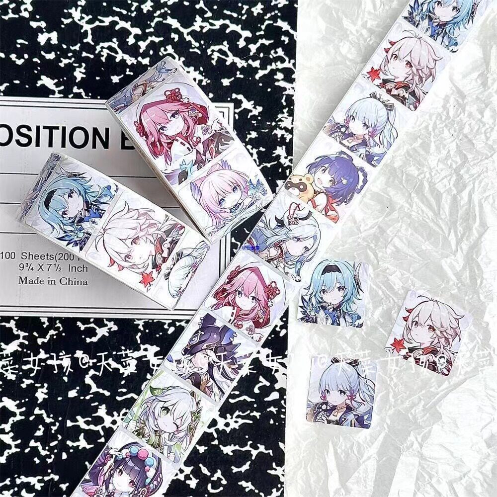 📚 呆呆原神方形卷卷贴装饰手账卡通可爱贴纸封口贴胶带小红书学生in