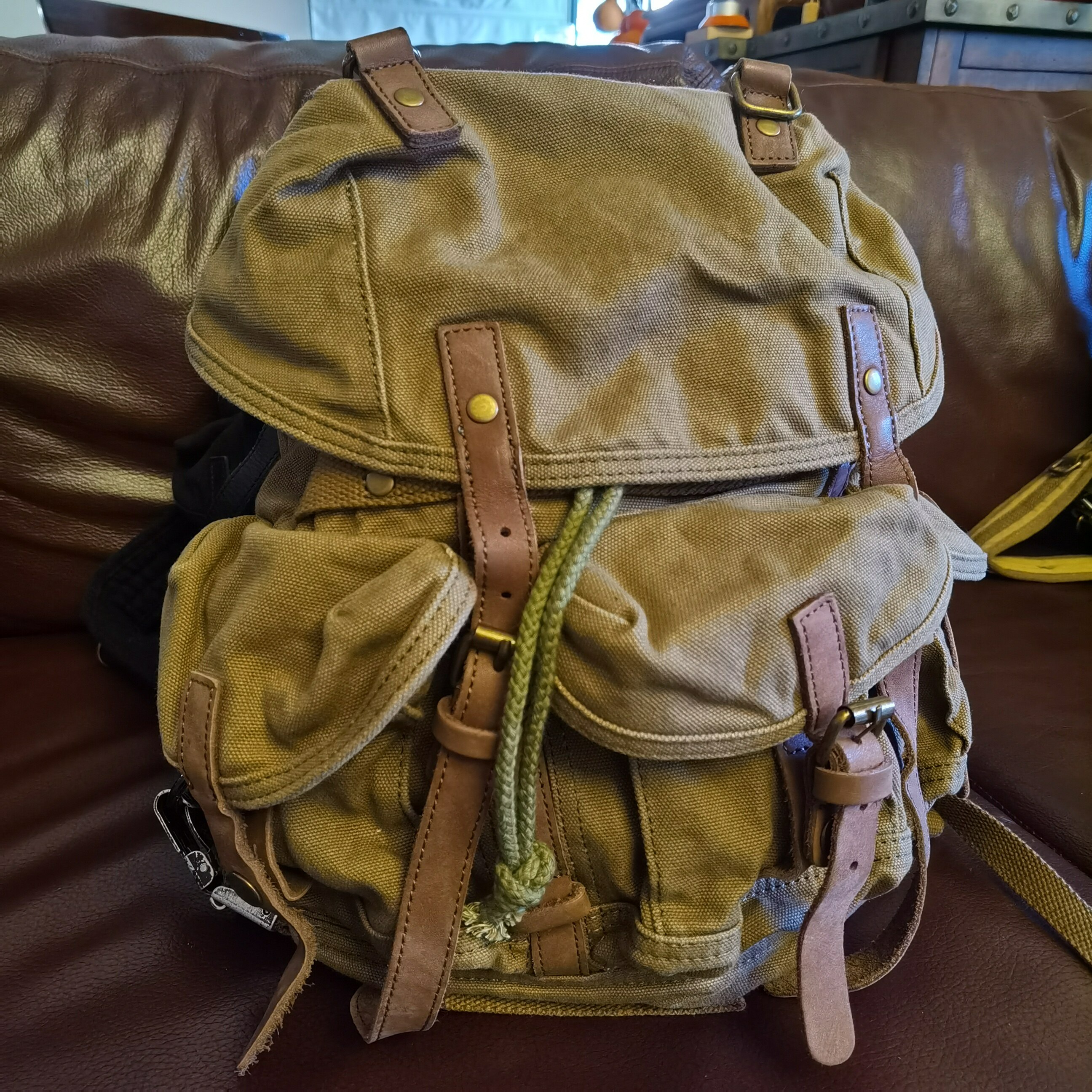 📚 二战头盔包帆布背包真皮休闲旅行包书包复古背包男士双肩包后背包
