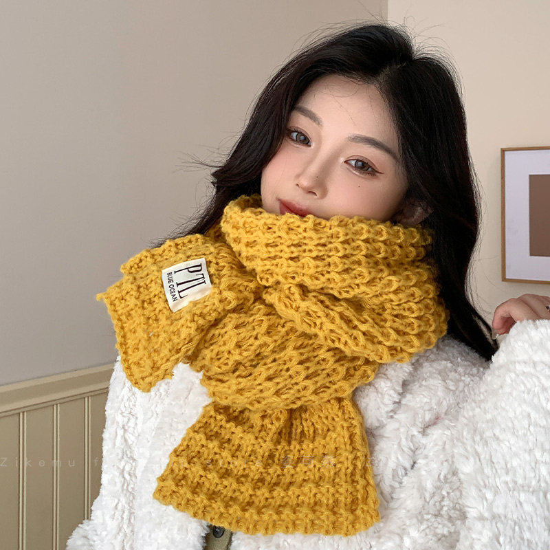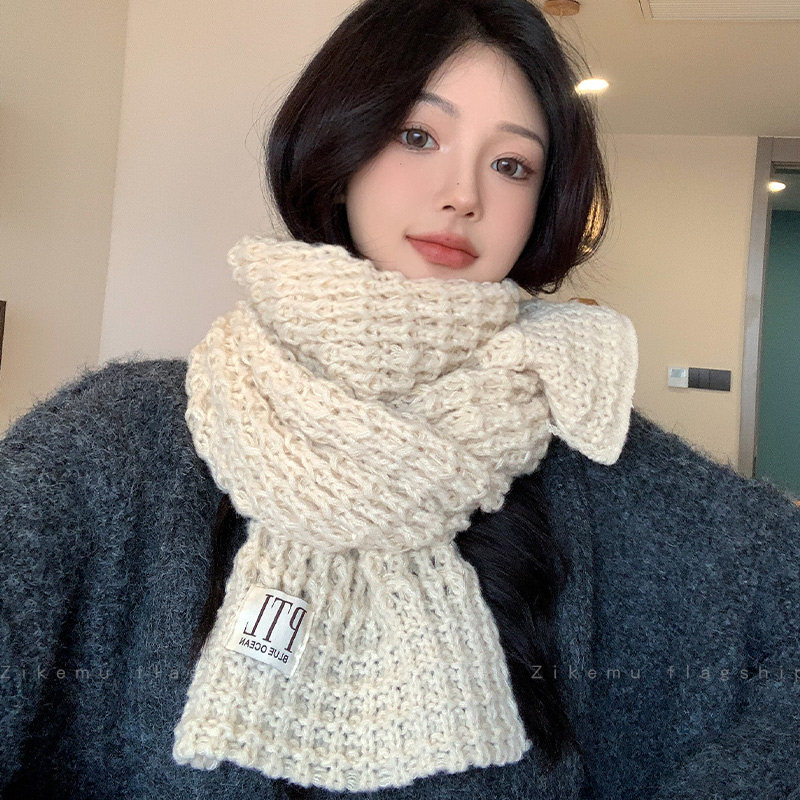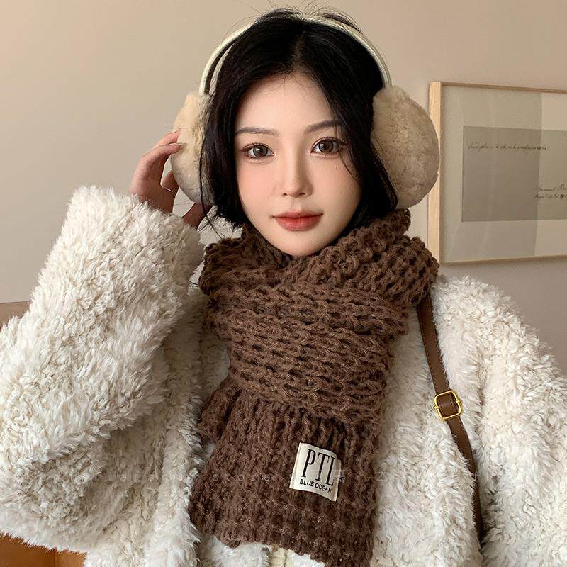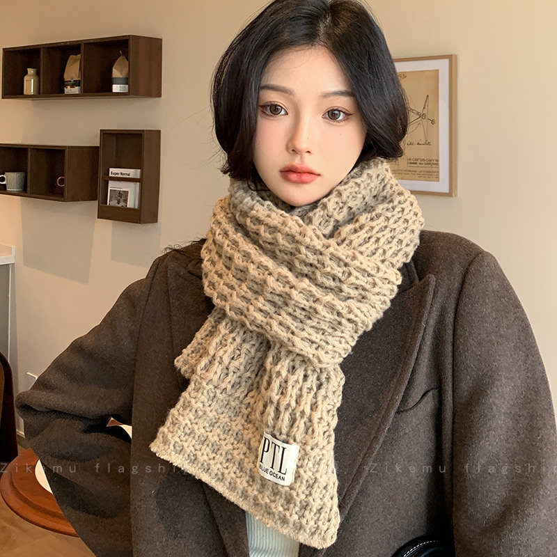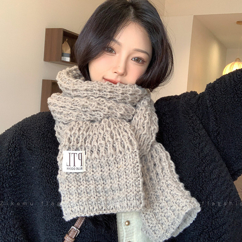 📚 针织毛线围巾女冬季韩版百搭高级感围脖情侣学生出游加厚保暖防寒