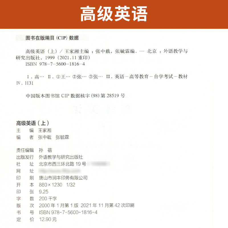 📚 自学考试教材00600高级英语上下册王家湘外研社2026年英语专业专升本书籍大专升本科专科套本成人成考成教自考高等教育用书