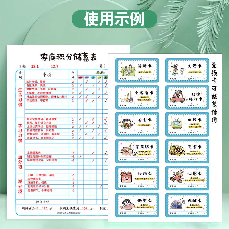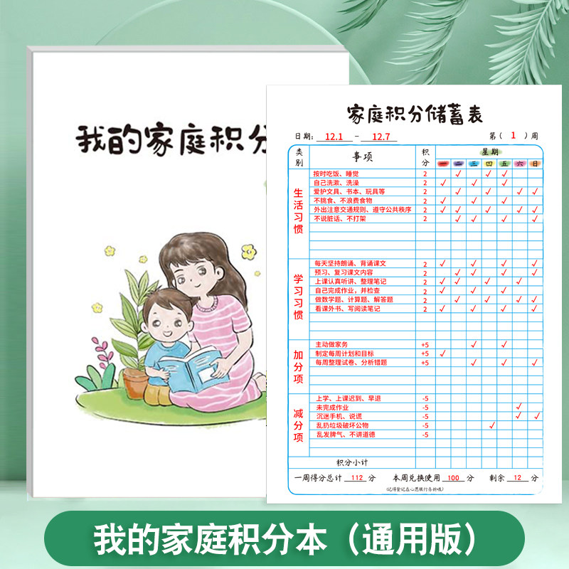 📚 小学中学生我的家庭积分本无明细版每周学习生活劳动奖罚规则坚持