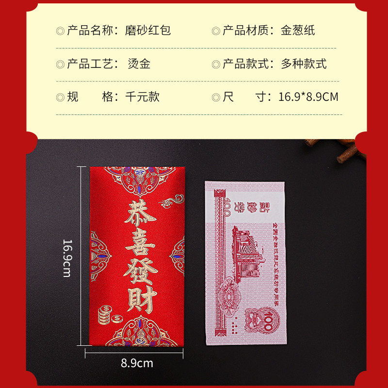 📚 恭喜发财中式高档通用红包磨砂大号小号新年大吉大利加厚款利是封