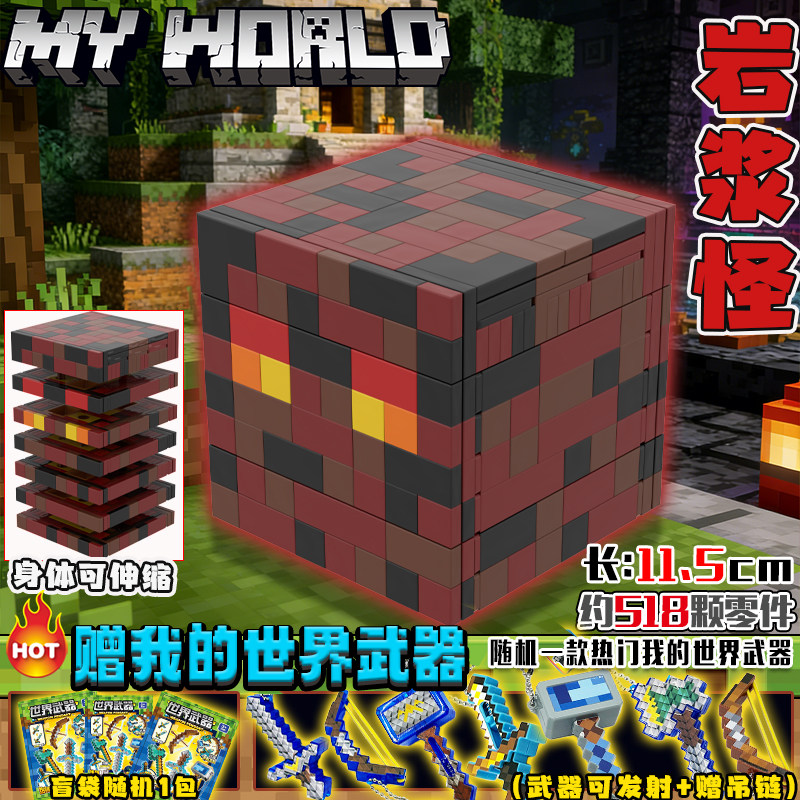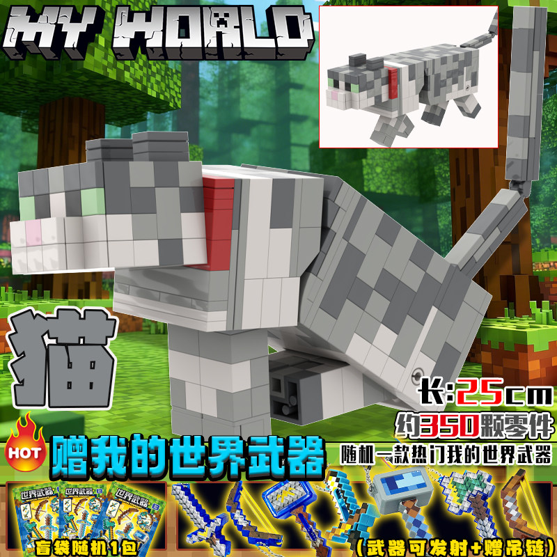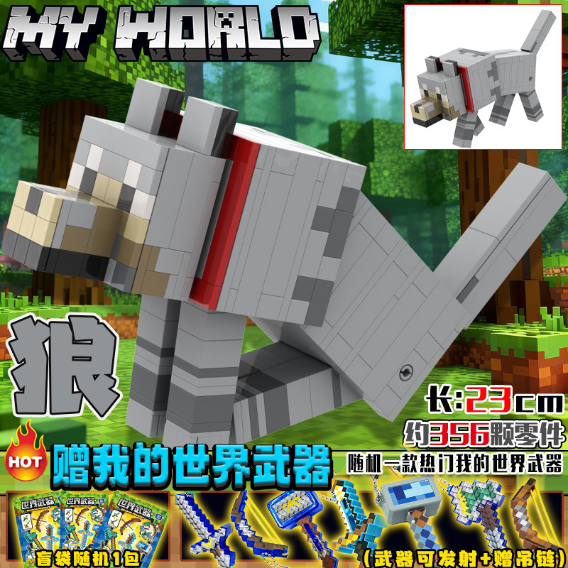 📚 我的世界适用乐高狼猫动物积木藏宝箱岩浆怪拼装铁傀儡机甲玩具男