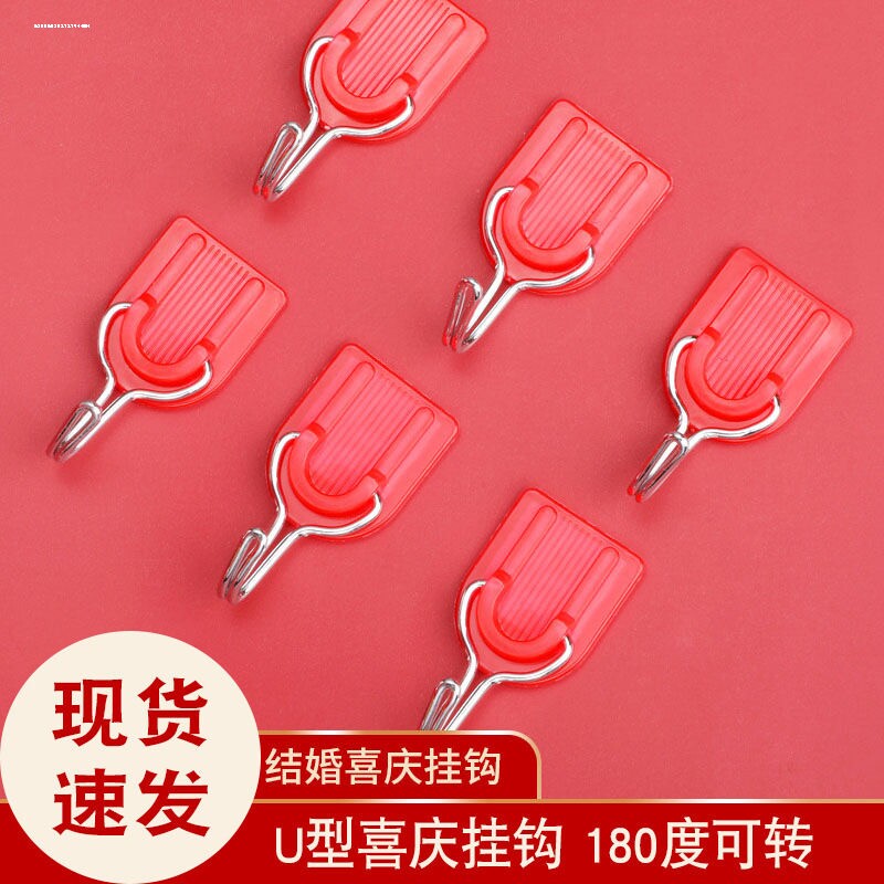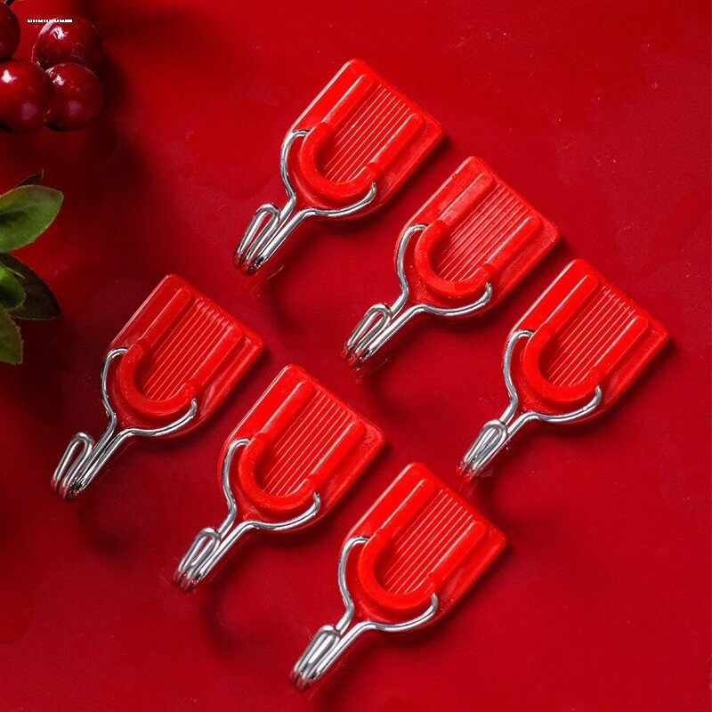 📚 红色挂钩强力粘胶挂中国结的挂钩小粘钩结婚免打孔挂墙上墙面门后