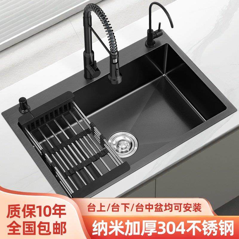 📚 诺米官方手工304不锈钢大单槽豪华水槽套餐配全铜抽拉龙头台下盆