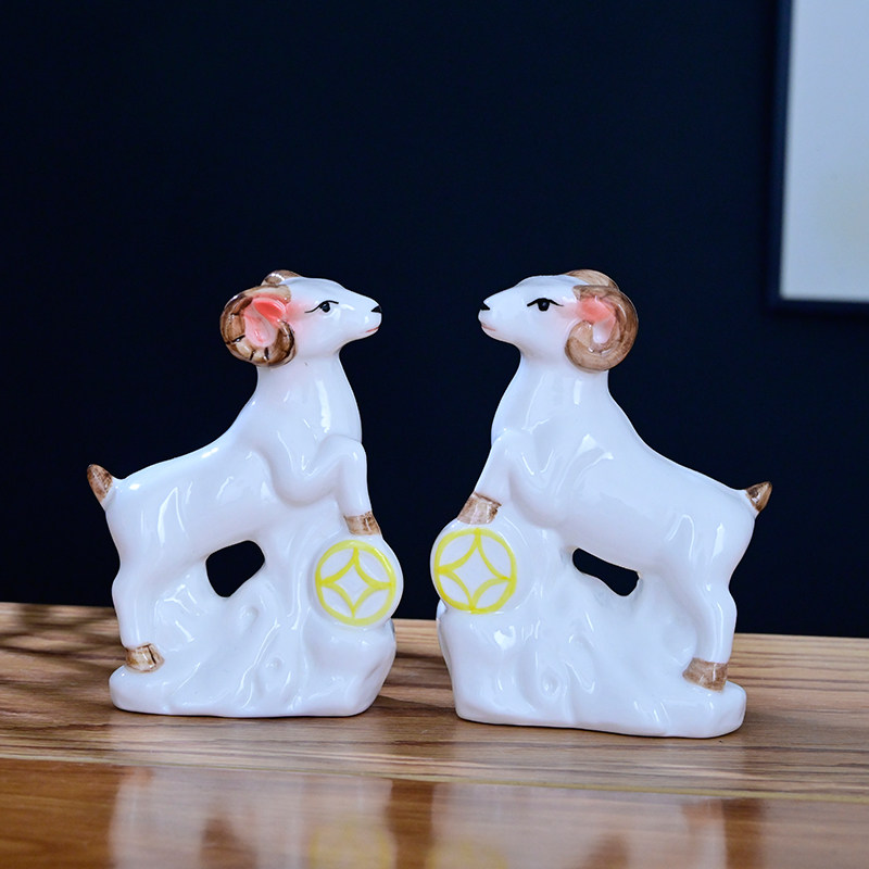 📚 陶瓷摆件招财小羊桌面工艺品生肖羊动物饰品属相吉祥礼物一对摆设