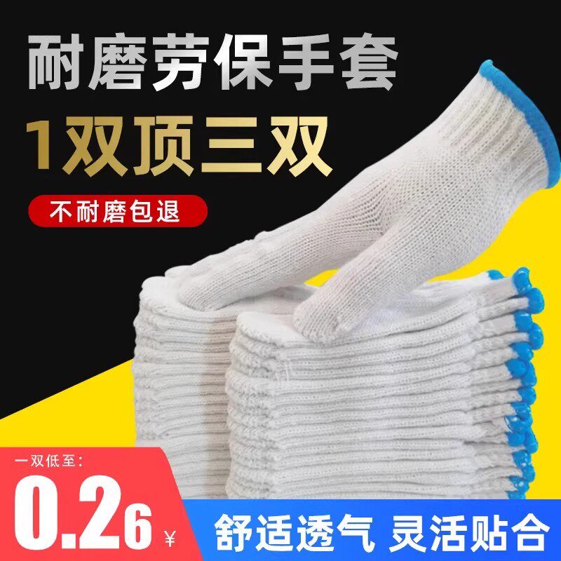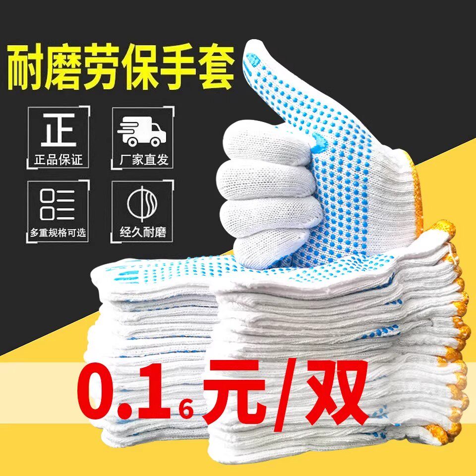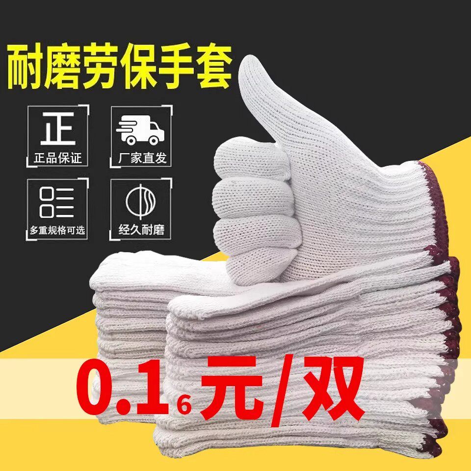 📚 线手套加厚劳保白棉纱耐磨男女防护劳动尼龙棉线工作汽修干活防滑