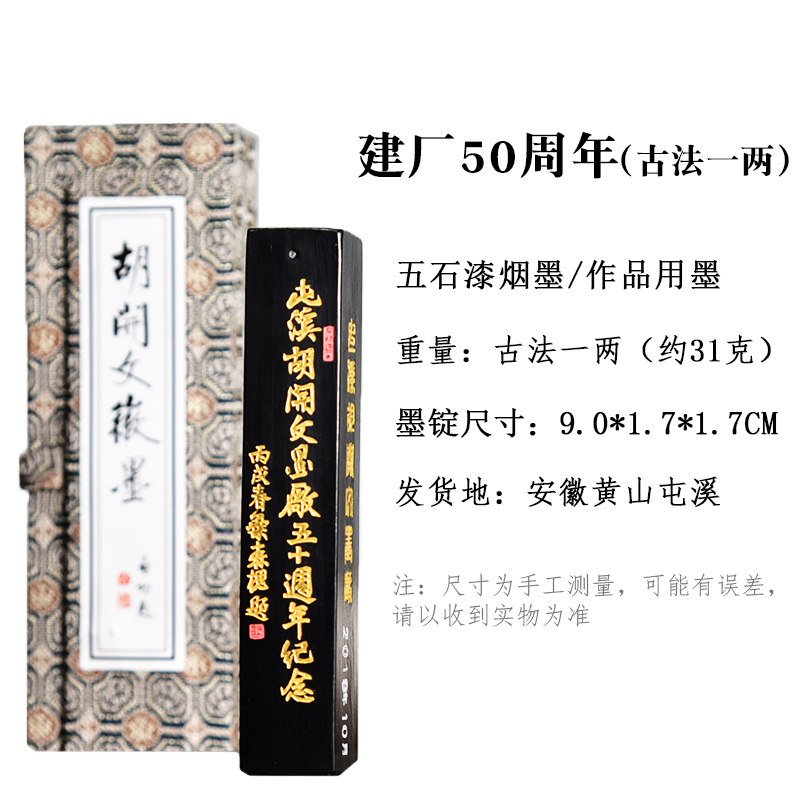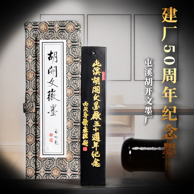 📚 屯溪胡开文油烟创作墨条五十周年纪念墨创作用墨文房四宝黄山纯手工徽墨古法制作书法绘画漆烟油烟墨块礼收藏