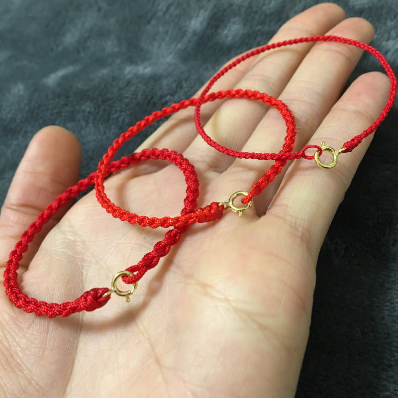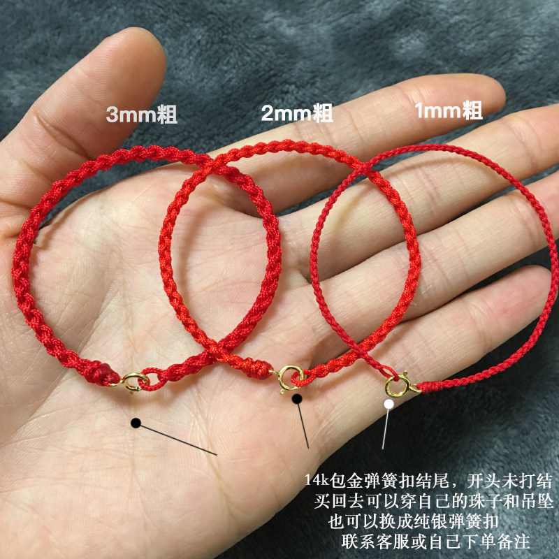 📚 马年情侣红绳黑绳手工编织diy手绳14k包金扣可穿珠男女手链绳子