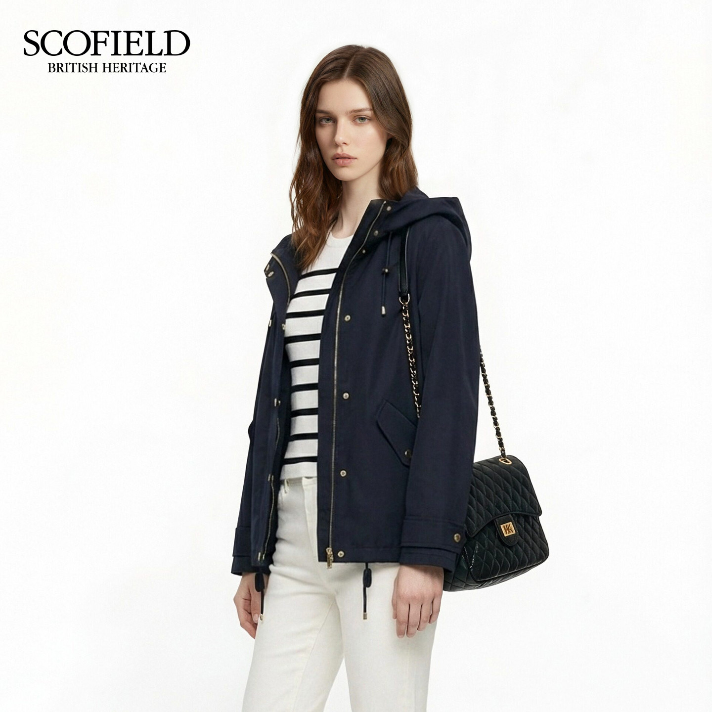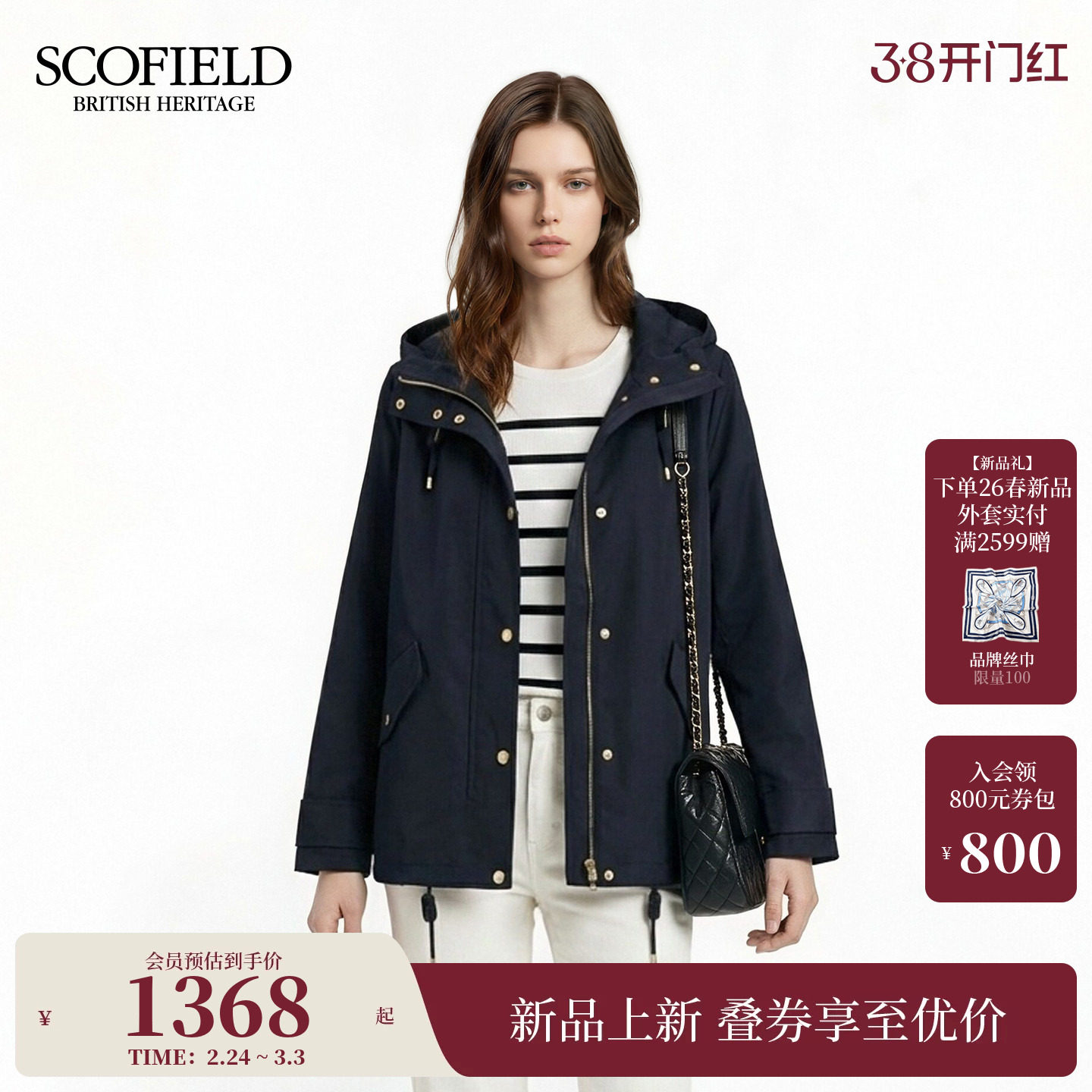 📚 Scofield女装休闲连帽抽绳外套翻盖口袋可调节袖口2026春季新品