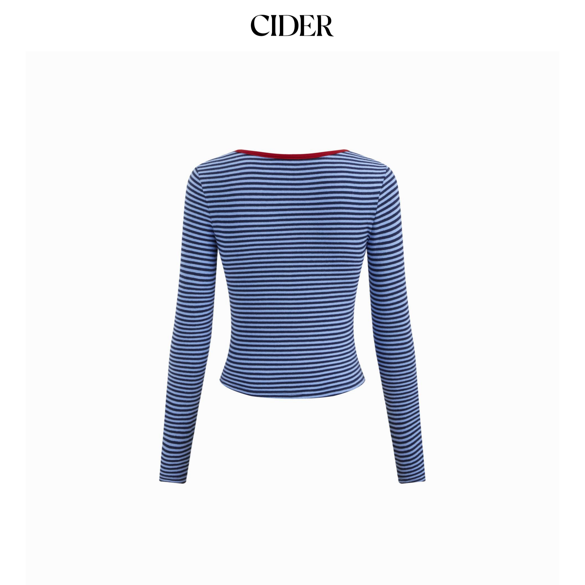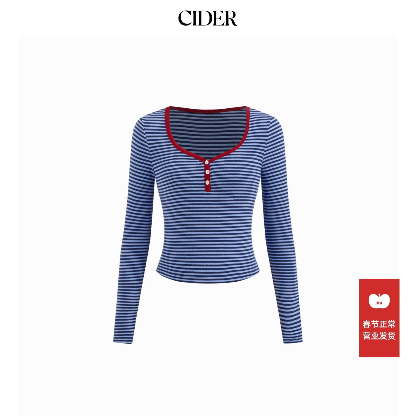 📚 CIDER春秋女装撞色镶边条纹甜心领长袖T恤114826968