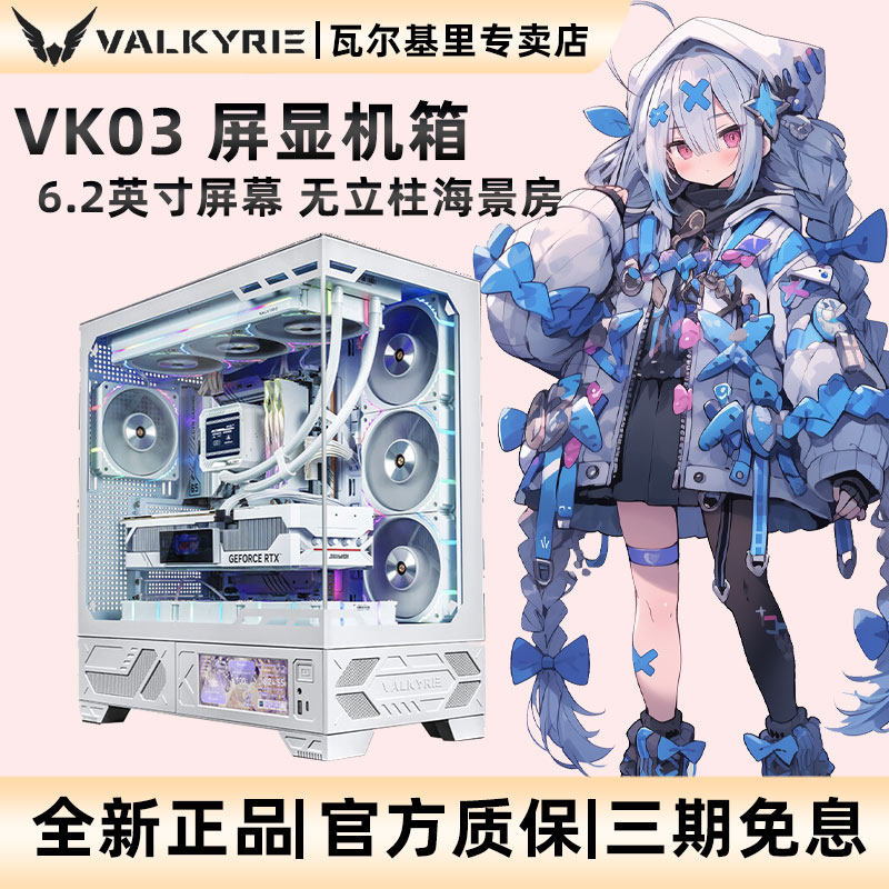 📚 VK瓦尔基里ATX机箱VK03无立柱侧透背插海景房6.2英寸屏幕电脑机箱