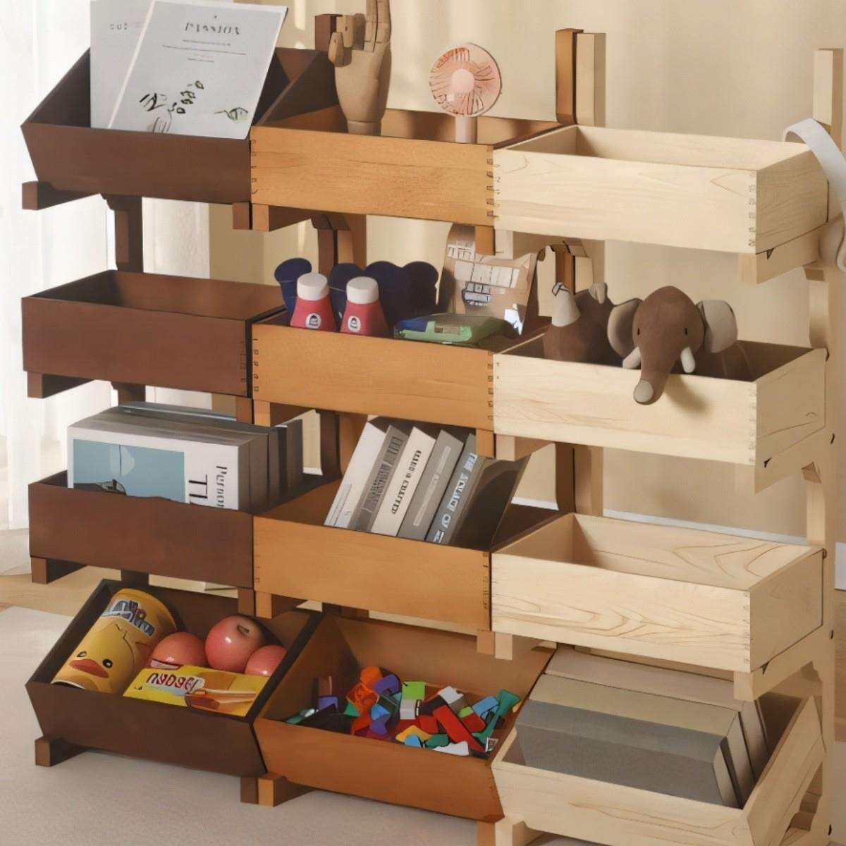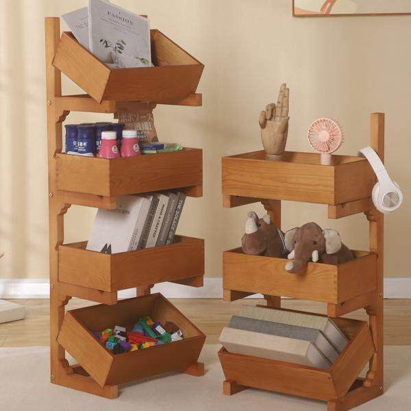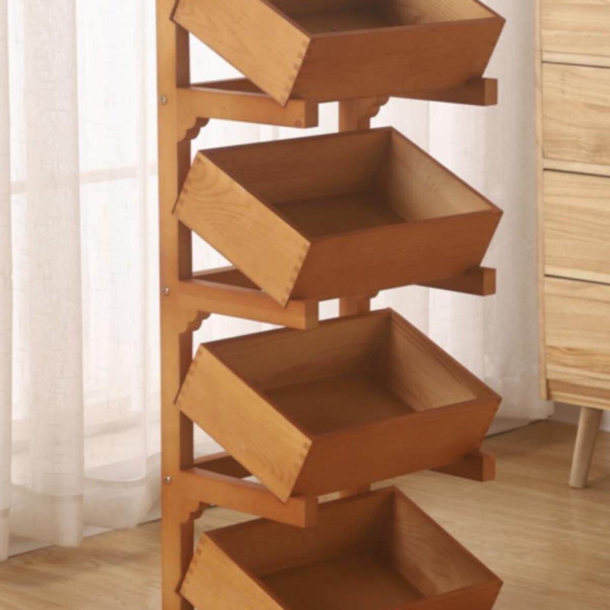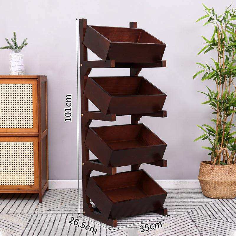 📚 实木置物架落地式多层置物架客厅装饰水果素菜收纳架木质展示架