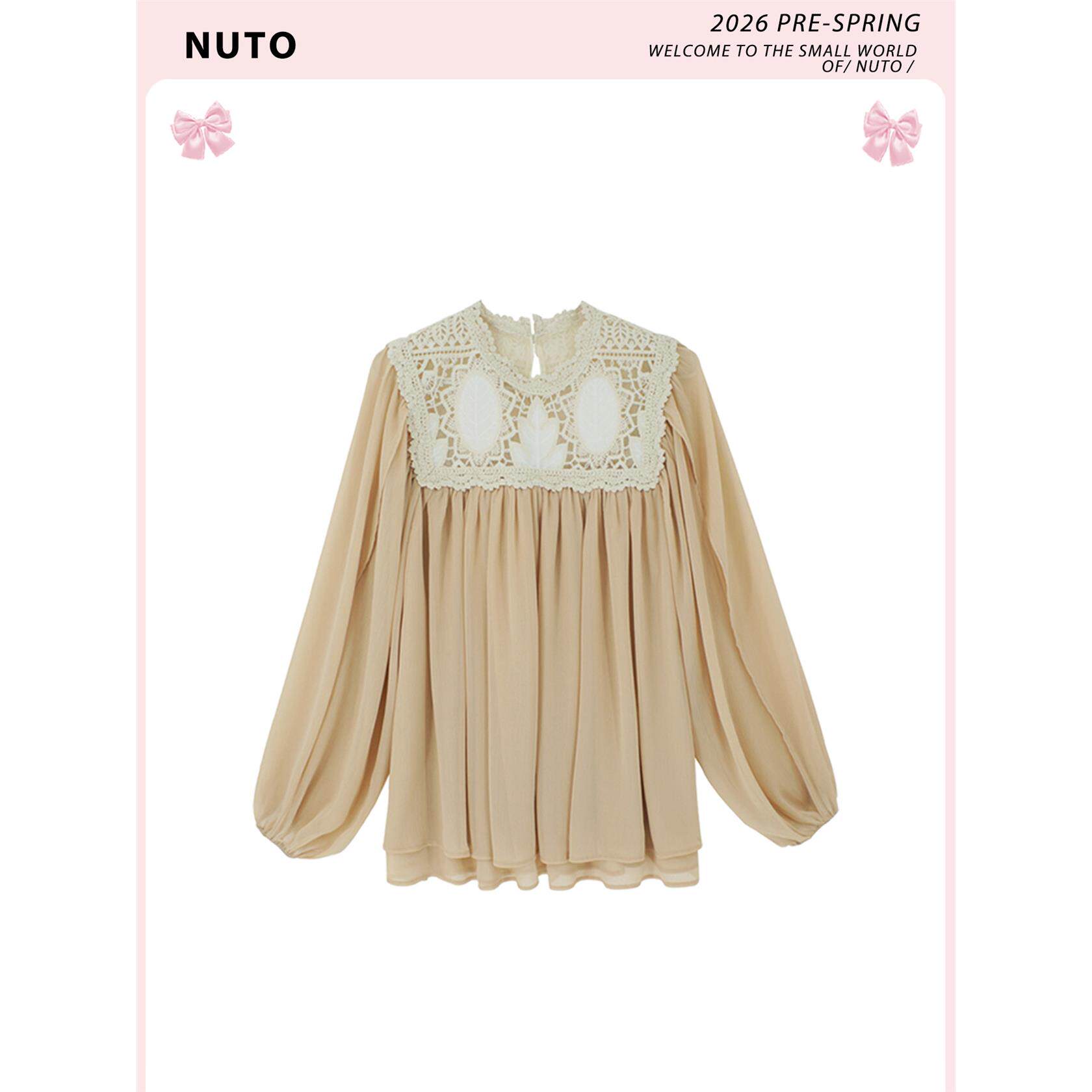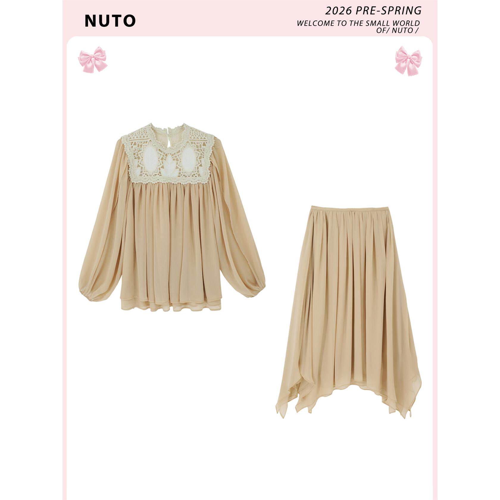 📚 NUTO 轻盈浪漫法式薄纱飘袖两穿立体刺绣衬衫层叠摆裙设计感套装