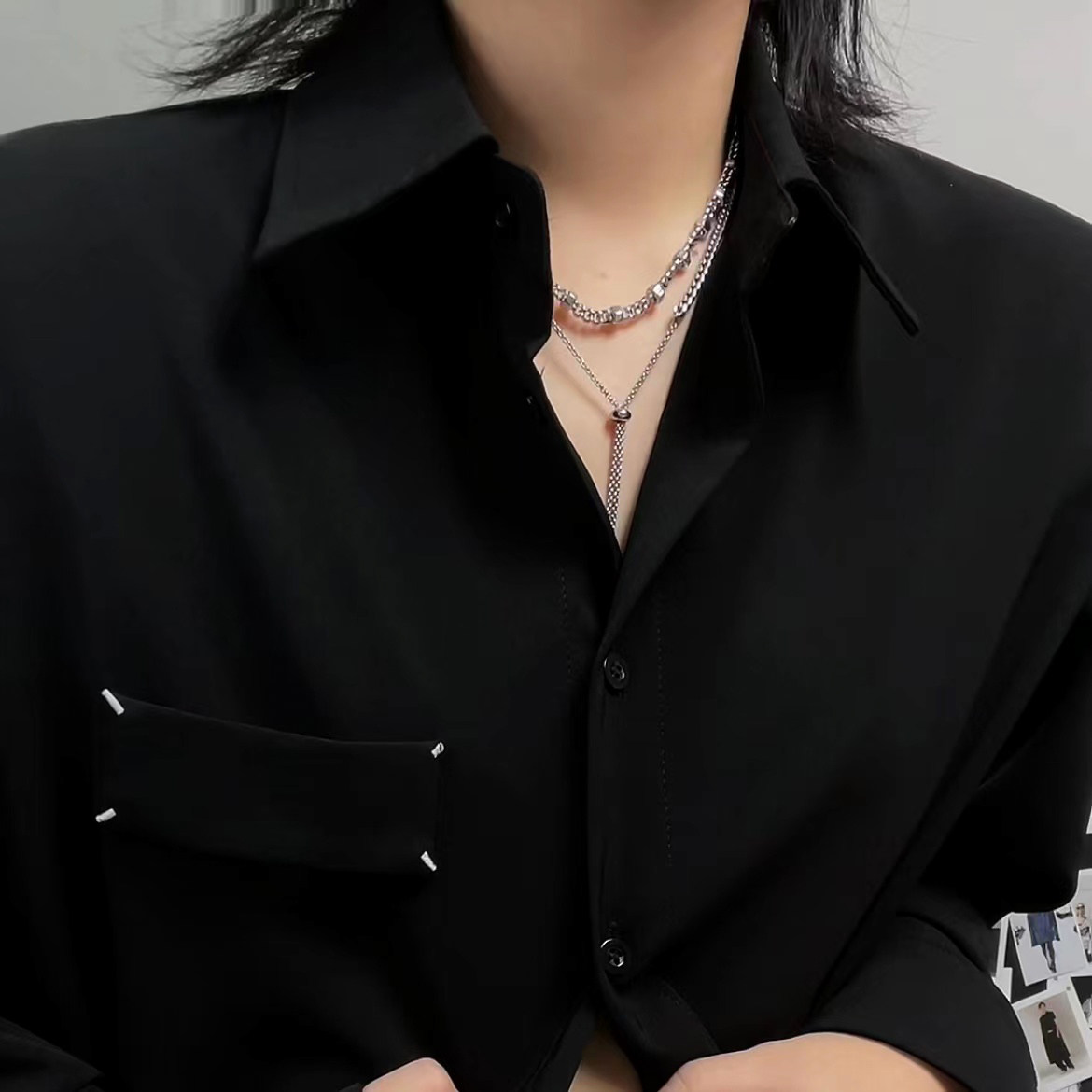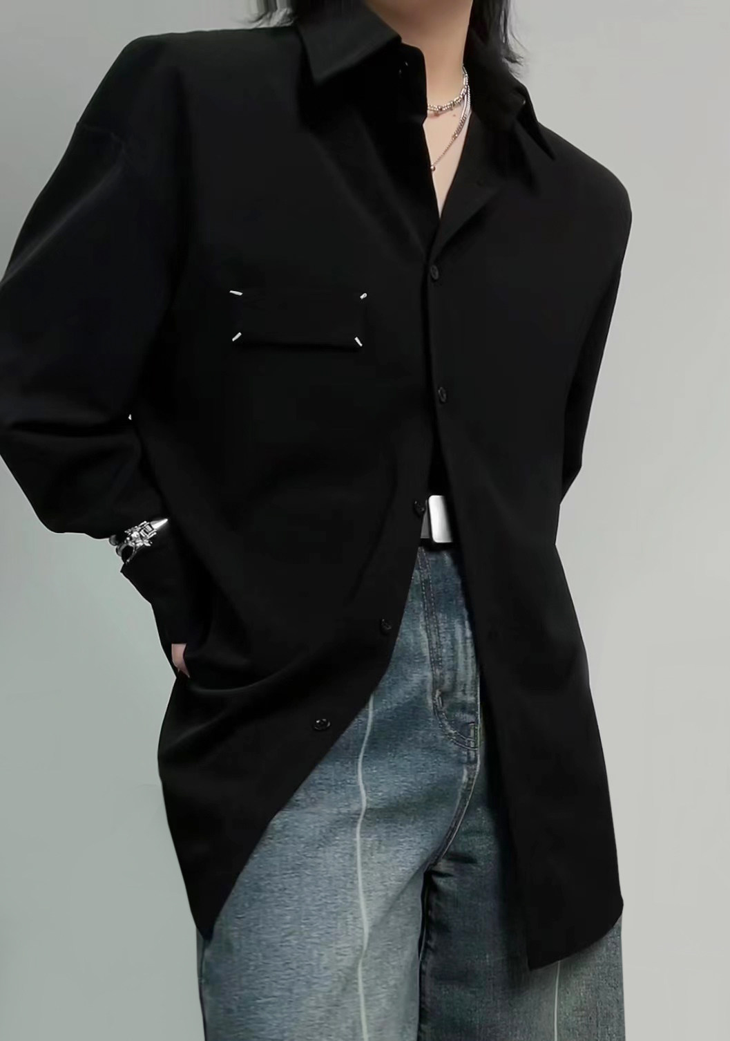 📚 purposeful 高级感黑色长袖衬衣春夏小众上衣