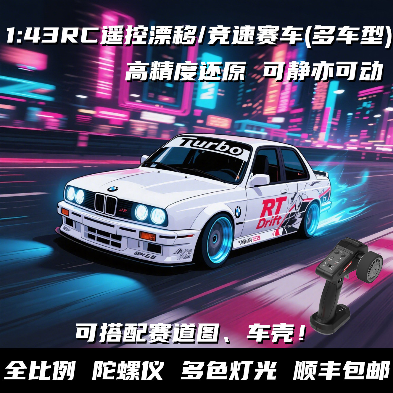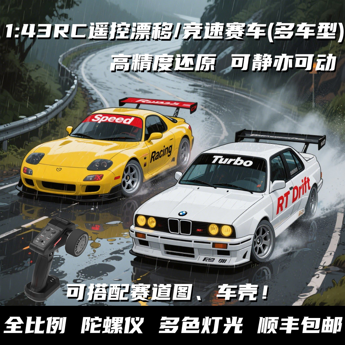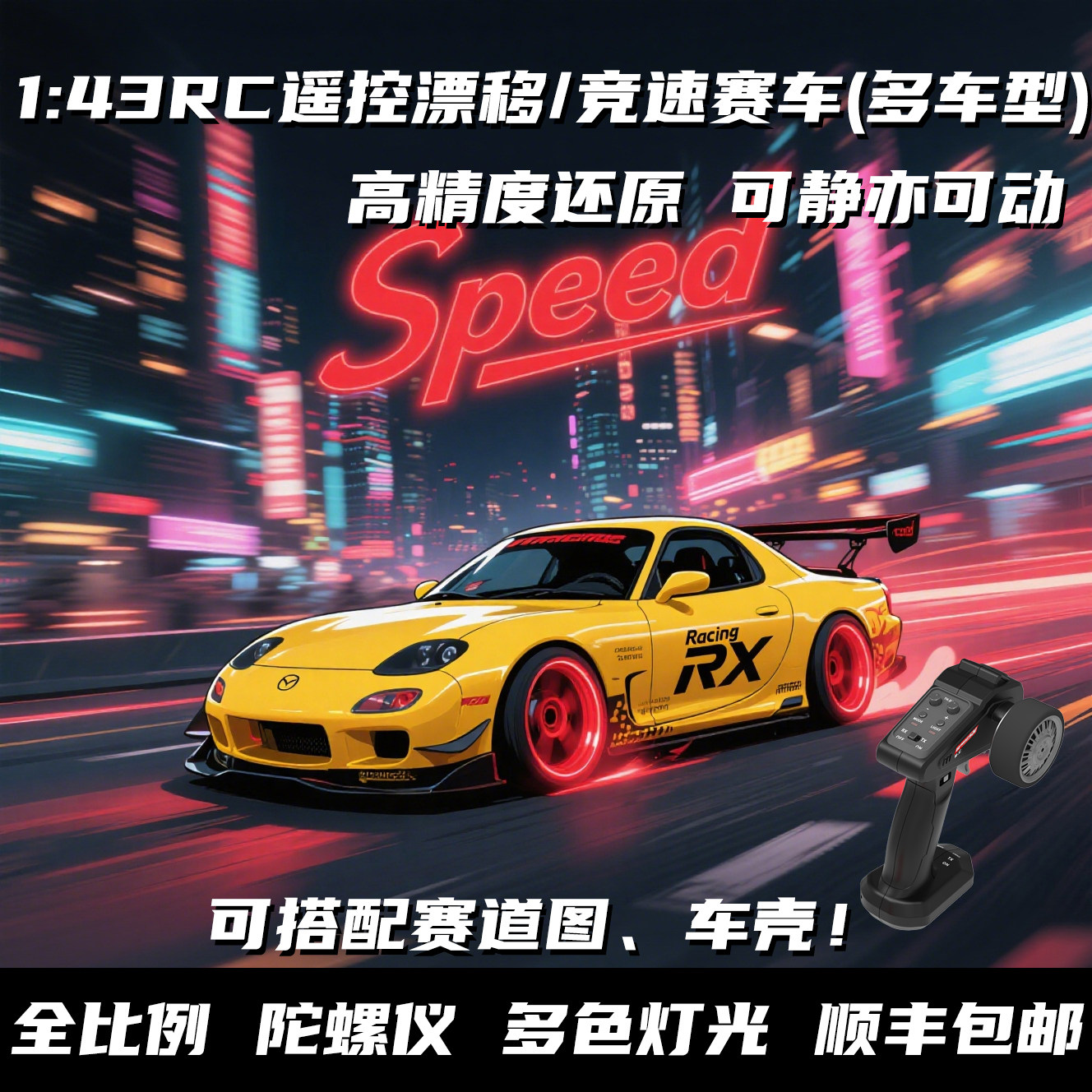 📚 全比例1:43RC桌面遥控漂移赛车迷你四驱多人竞技炫酷专业改装模型