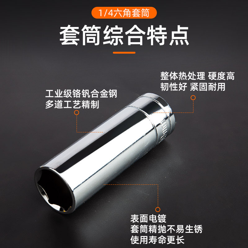 📚 1/4小飞内六角长套筒4mm单个小号空心套铜8小飞接杆10加长套同子