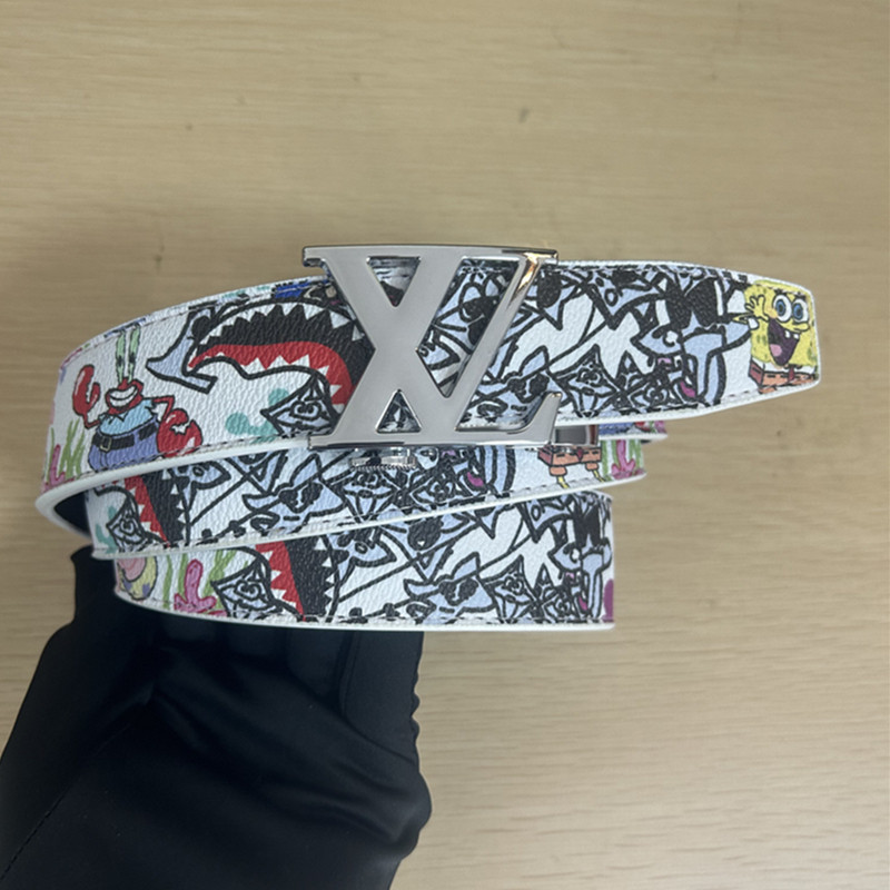 📚 潮流皮带男百搭涂鸦自动扣卡槽学生腰带休闲新款混色网红同款裤带