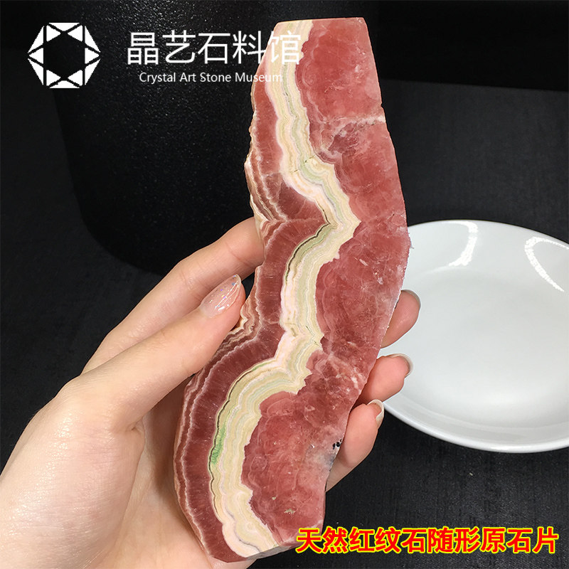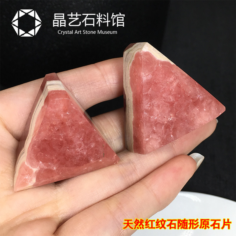 📚 极速天然菱锰矿原矿矿物晶体教y学标本冰种红纹石原石切片摆件一