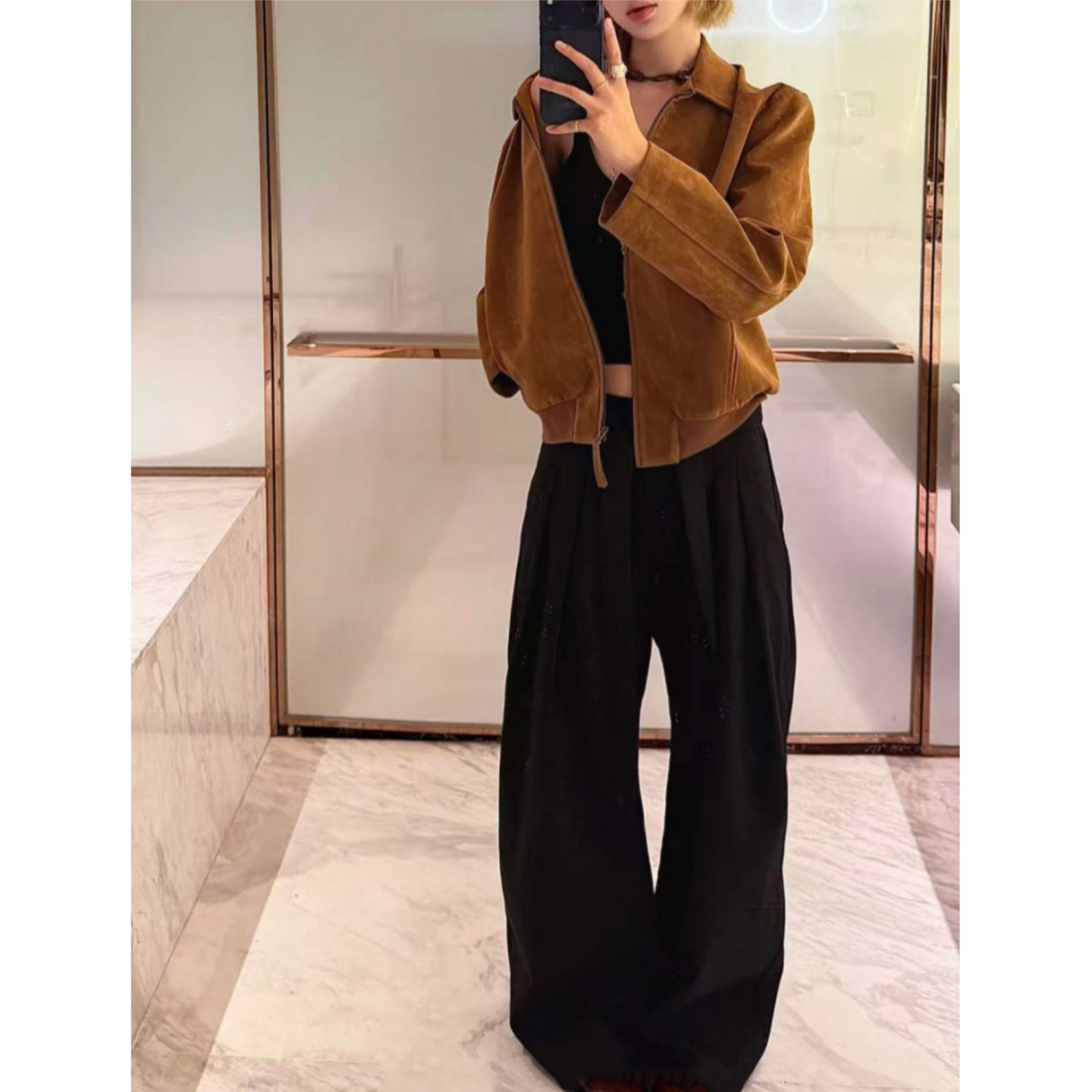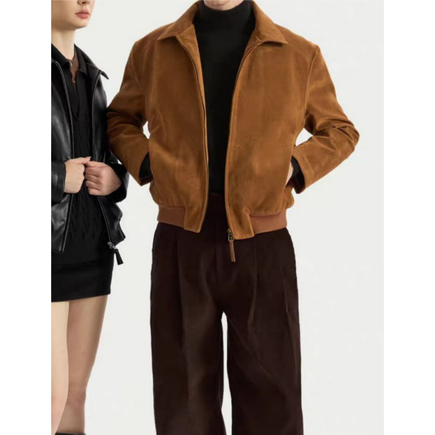 📚 Stay the Night 棕桔色麂皮外套正肩合身翻领夹克老钱风短宽外套