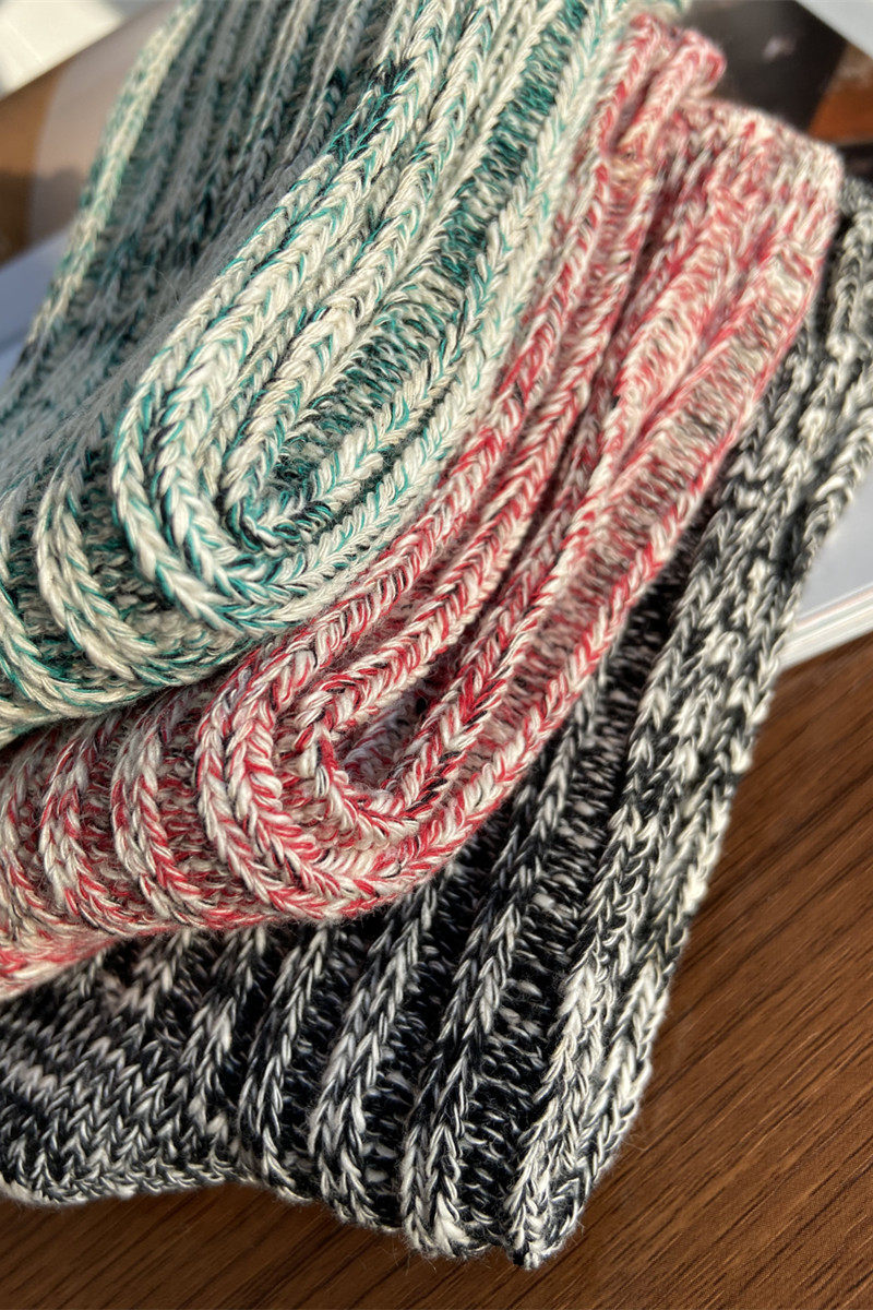 📚 Stochastic混纺竹节纱彩色编织粗针纯棉袜复古中筒袜吸汗透气防臭