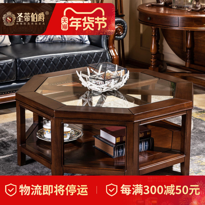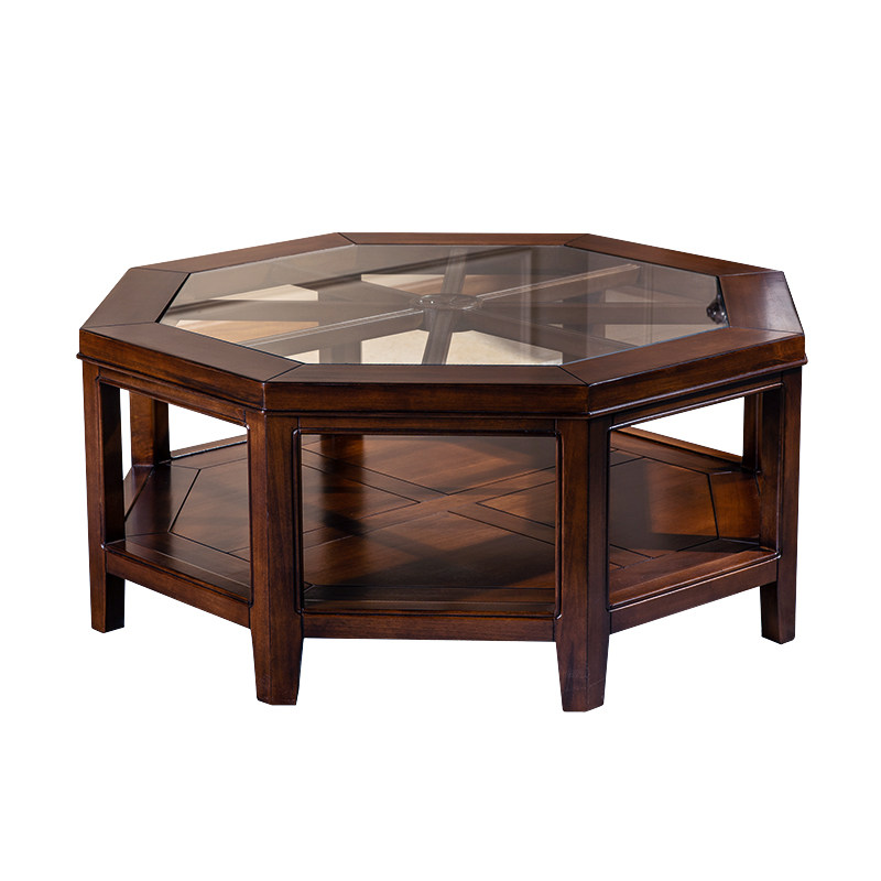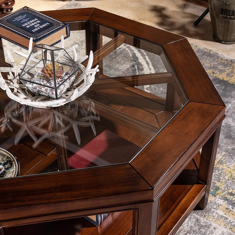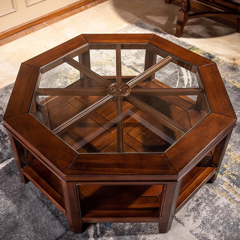 📚 美式全实木茶几桌异形玻璃镂空客厅家具设计师款八角茶台咖啡桌子