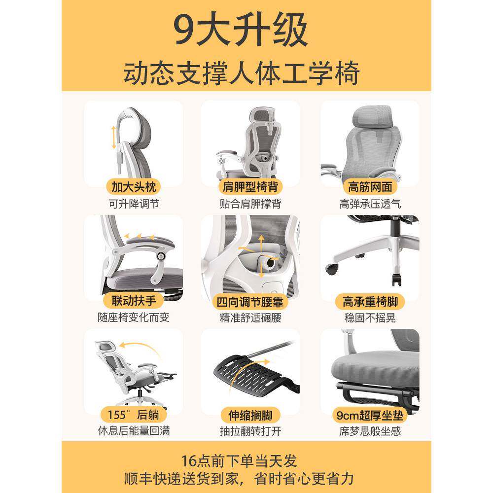 📚 电脑椅W303护用家办公椅人子舒适久坐可躺电竞座椅升降学习腰体工