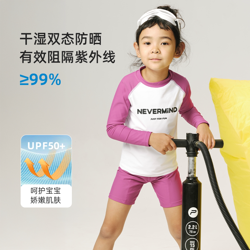 📚 NEVERMIND儿童泳衣裤夏季插肩袖女童透气防紫外线撞色男童上衣