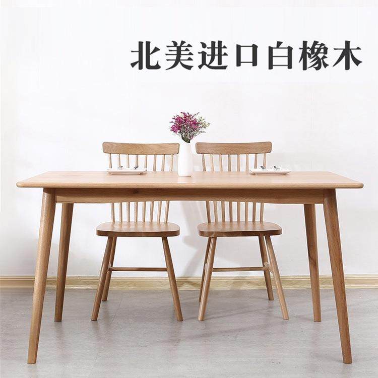 📚 北欧实木餐桌白橡木单桌简约长方形饭桌温莎椅小户型长桌原木家具