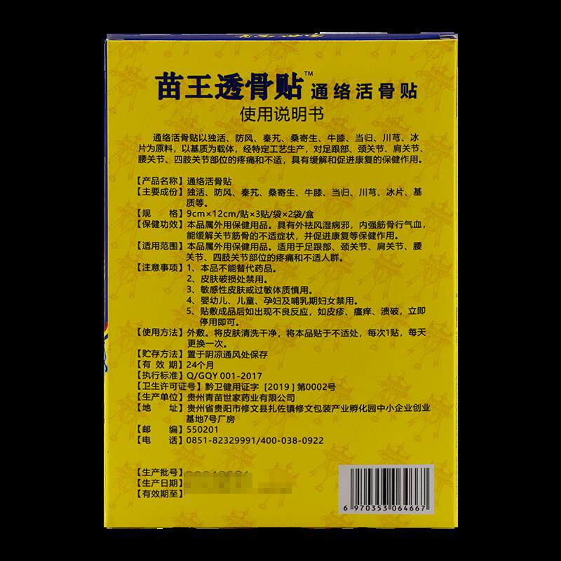 📚 正品青苗世家苗王透骨贴6贴/盒通络活骨贴跌打损伤腰颈肩颈贴药膏