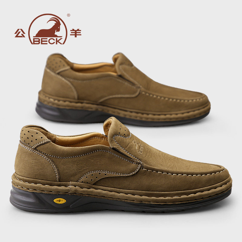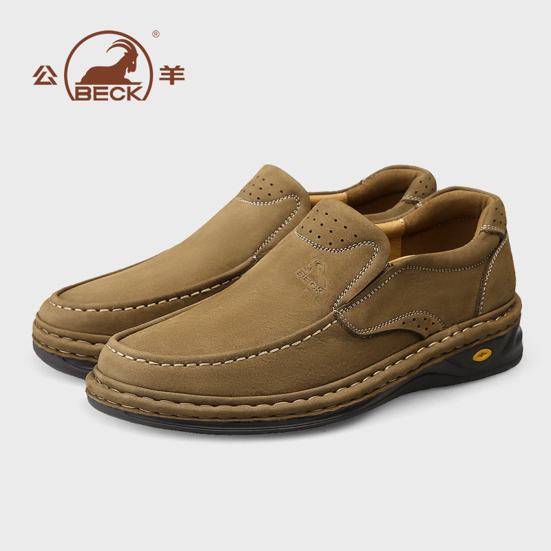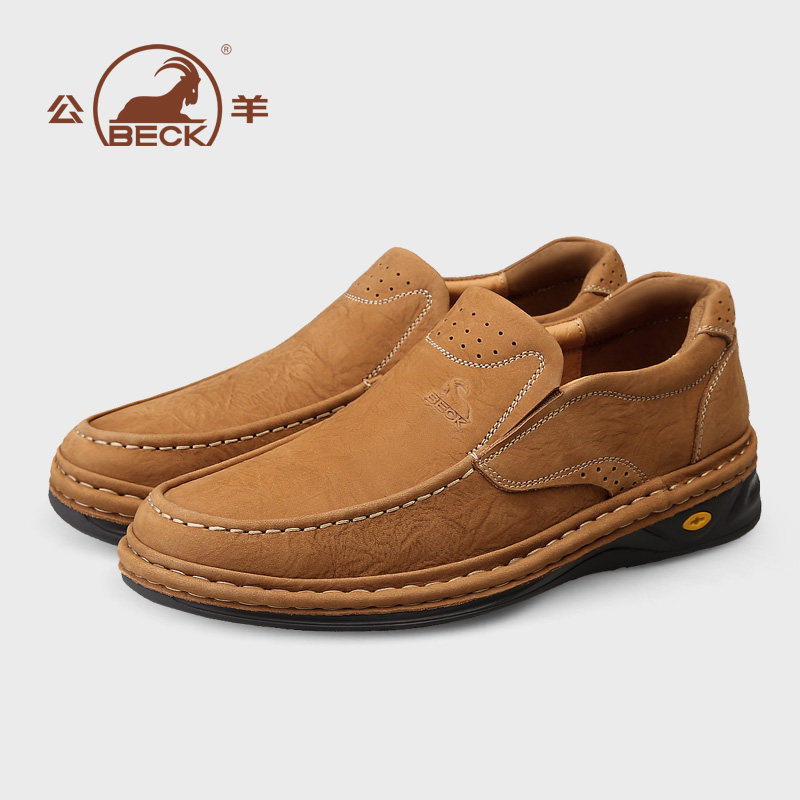 📚 公羊皮鞋2025新款男户外士一脚蹬休闲鞋真皮厚底耐磨头层牛皮鞋子