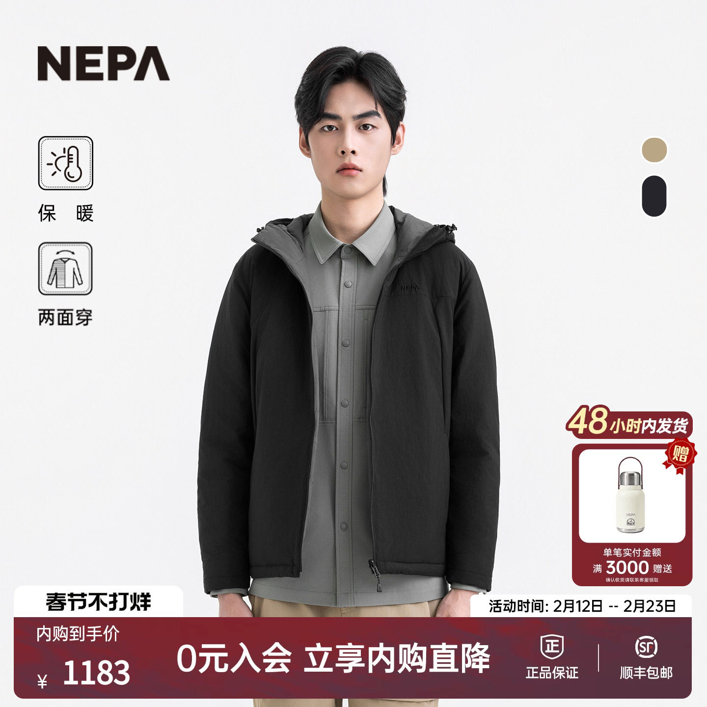 📚 NEPA耐葩户外25秋冬新品男士羽绒服可双面穿着轻快保暖7L72022