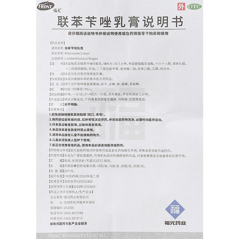 📚 福元 联苯苄唑乳膏15g皮肤真菌如手足癣体癣股癣花斑癣感染药膏