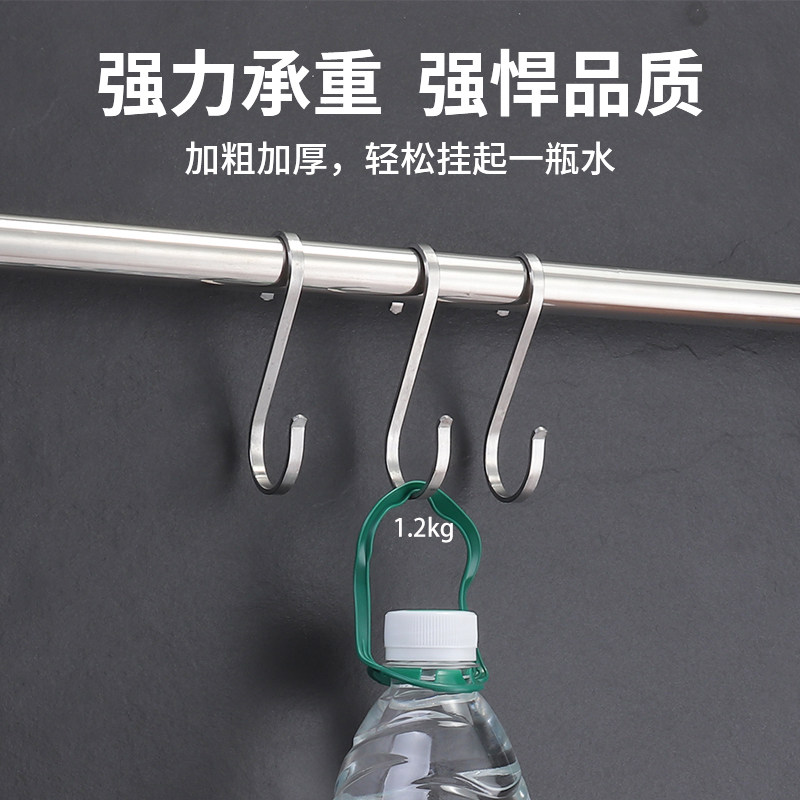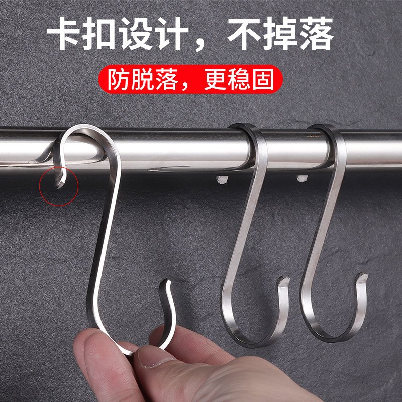 📚 S型不锈钢挂钩加厚厨房置物货架304钩子s免打孔多功能扁钩圆管S勾