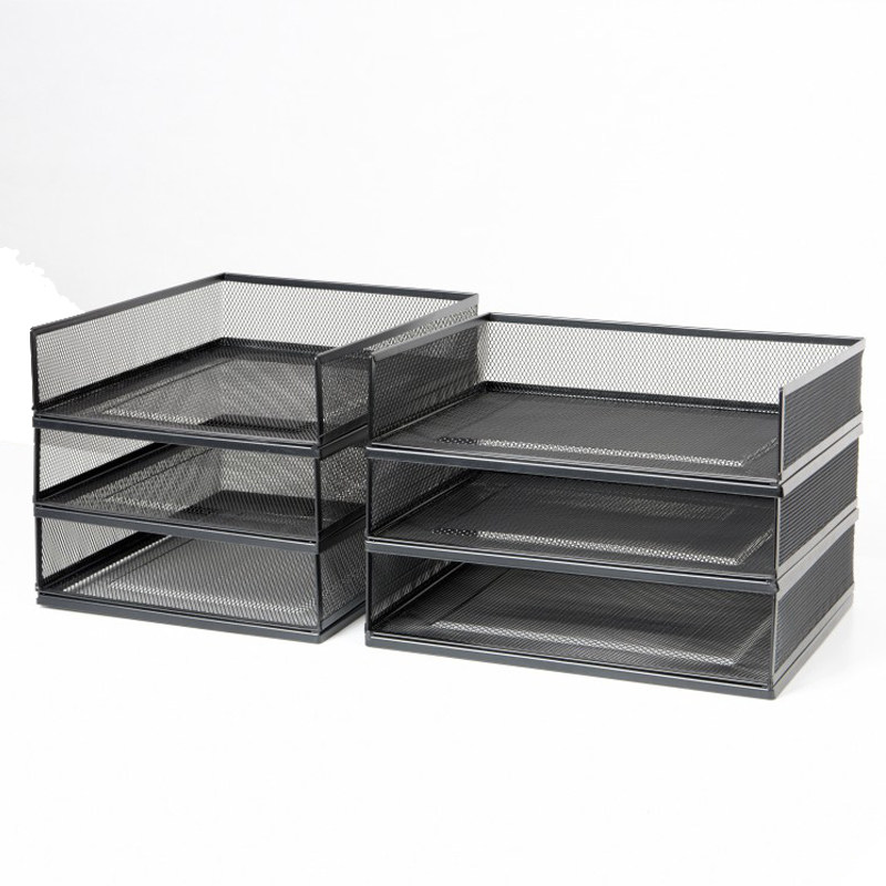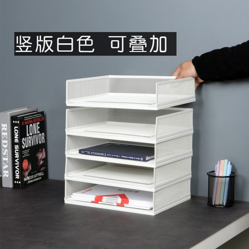 📚 办公室桌面铁艺可叠加A4文件收纳盘档案资料分类框杂物资料文件架