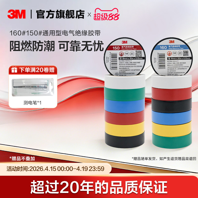 📚 3M 160#150#电工胶布高粘性绝缘PVC电胶布阻燃防潮电气绝缘胶带