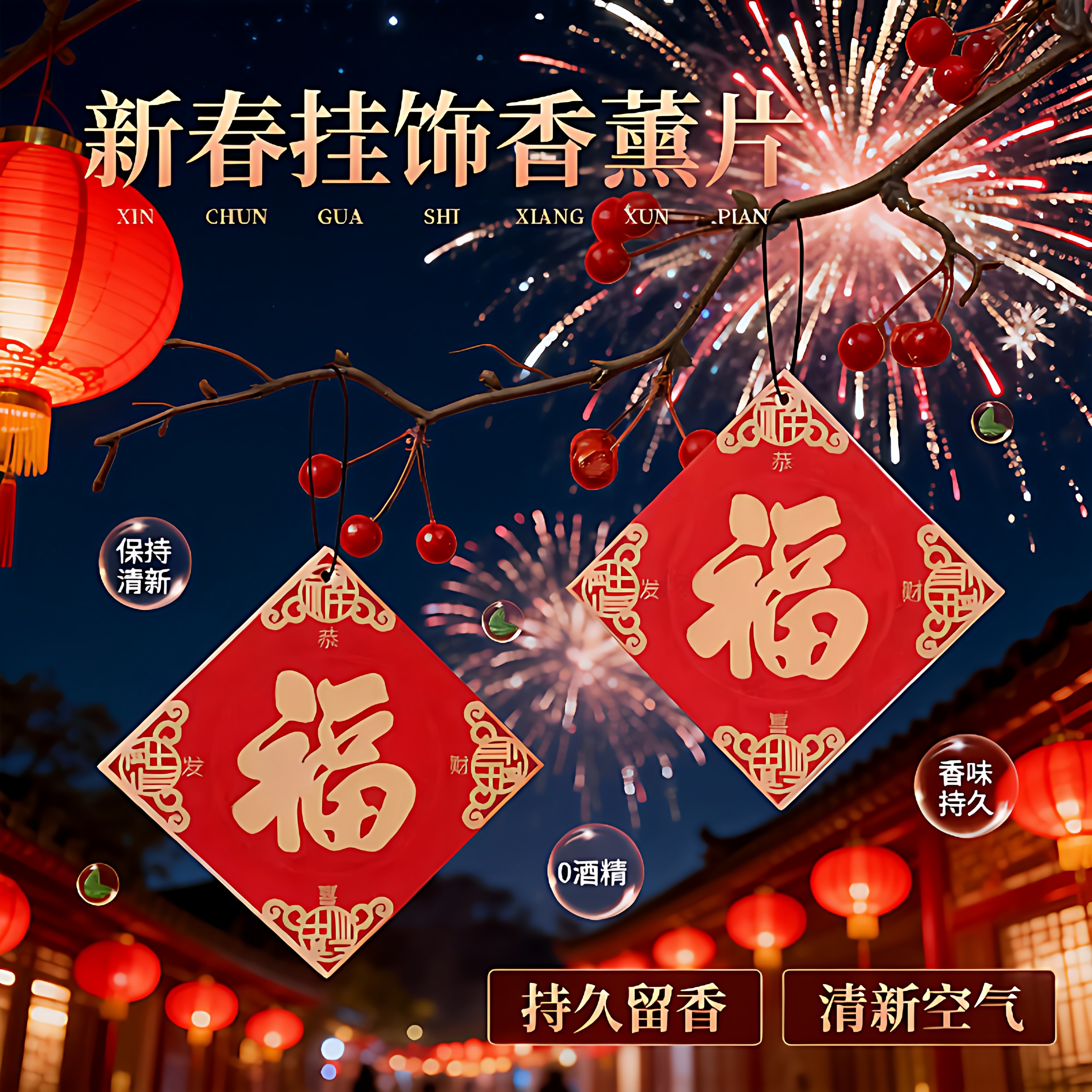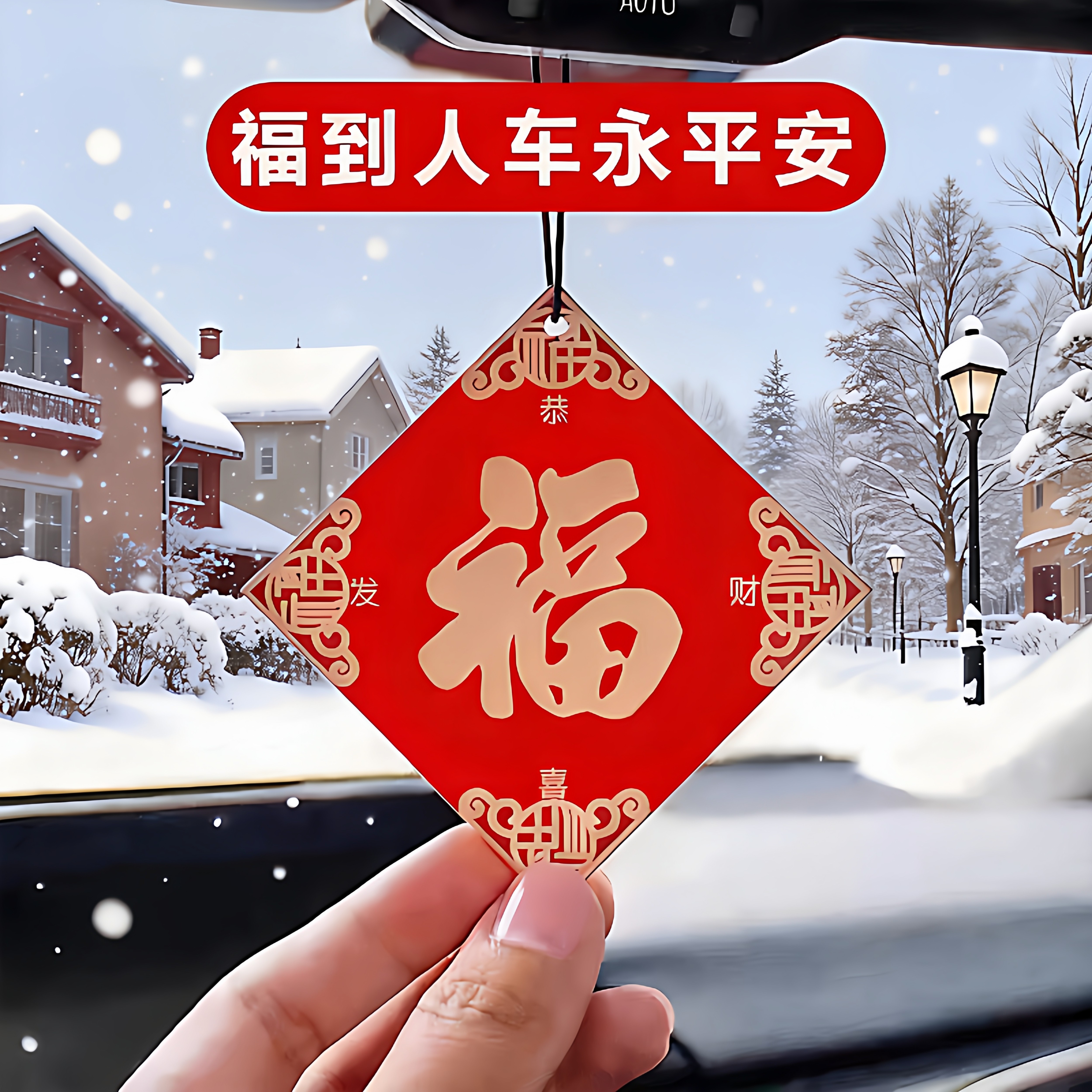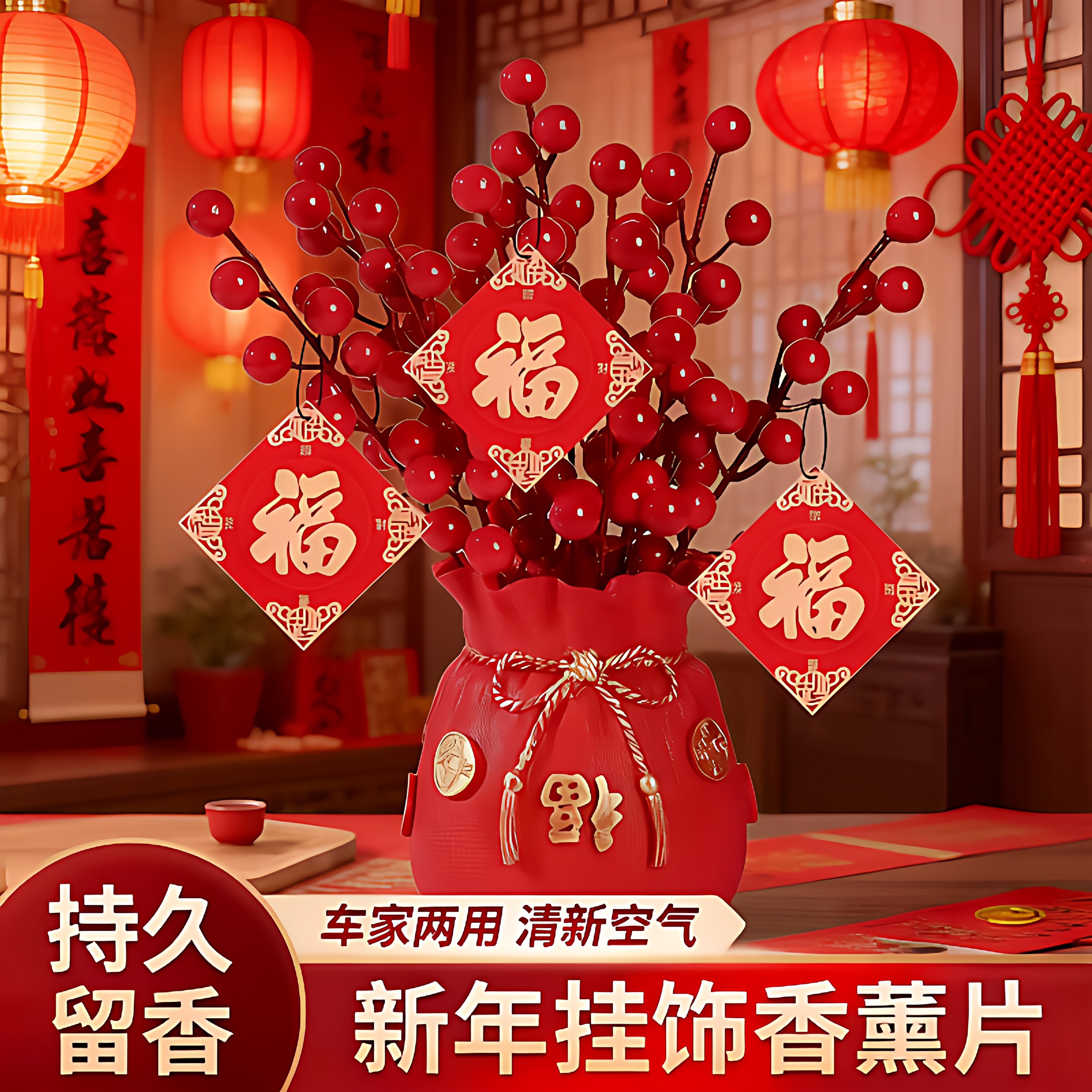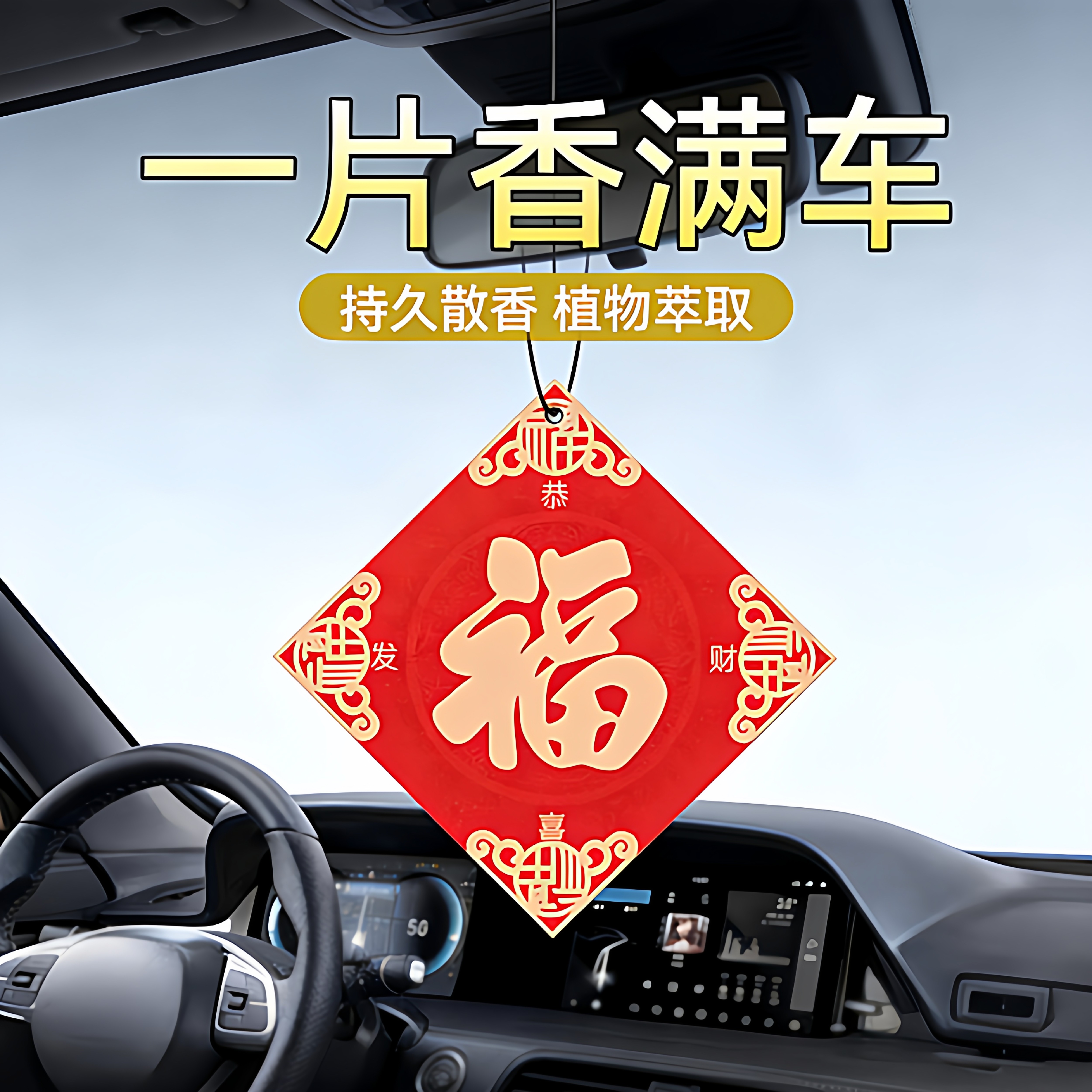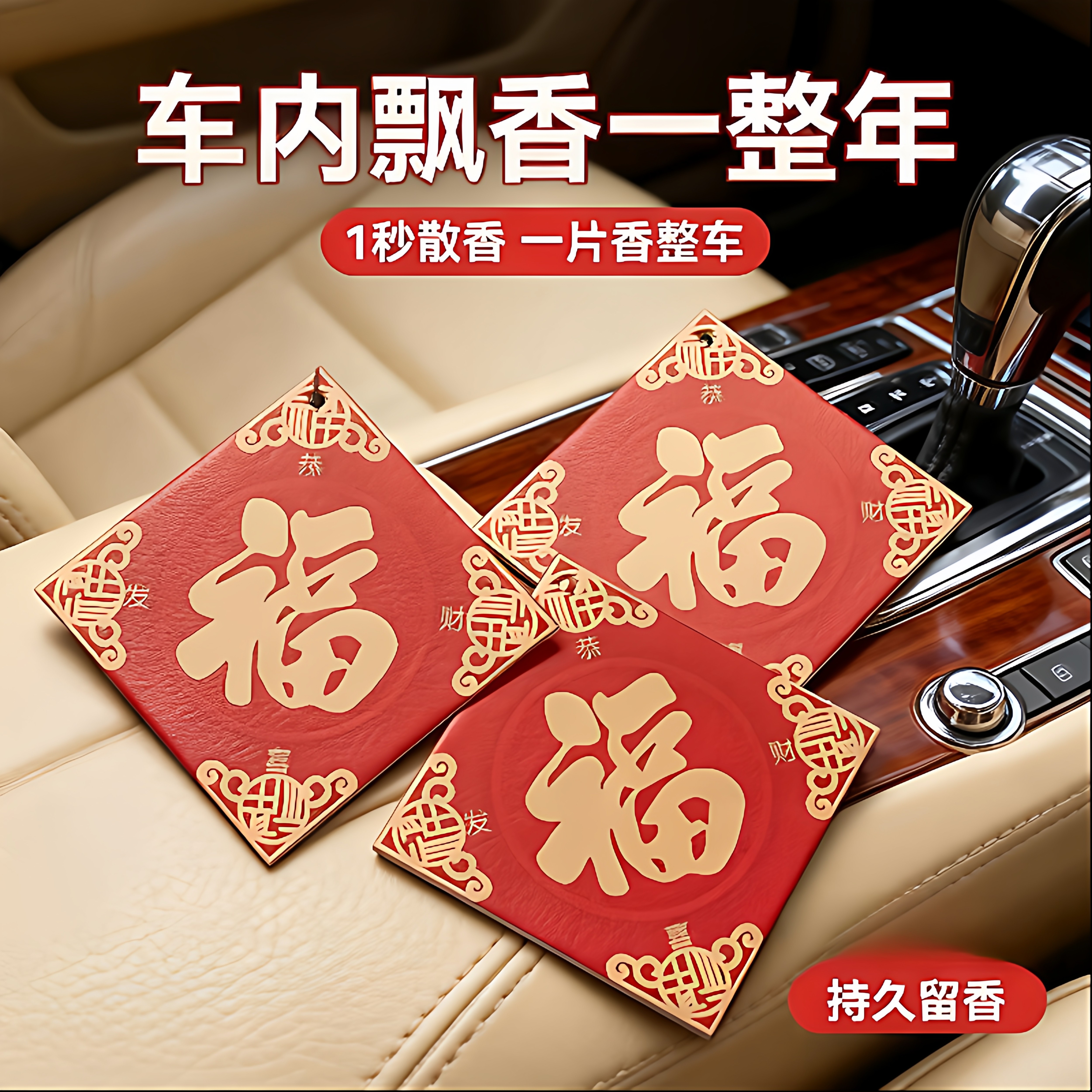 📚 车载福字香片片新年安福挂饰香水挂件车内持久除异味香氛实用车里