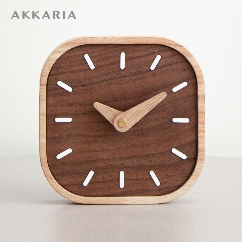 📚 黑胡桃实木小桌钟书桌面台钟静音床头座钟迷你小钟表北欧创意装饰