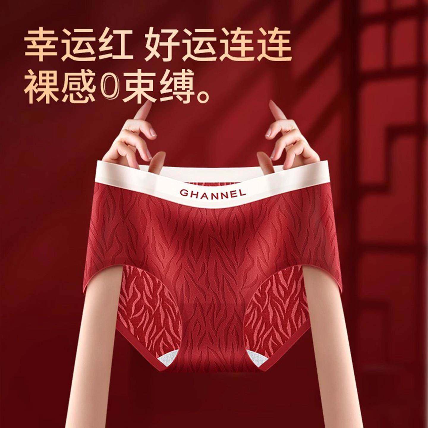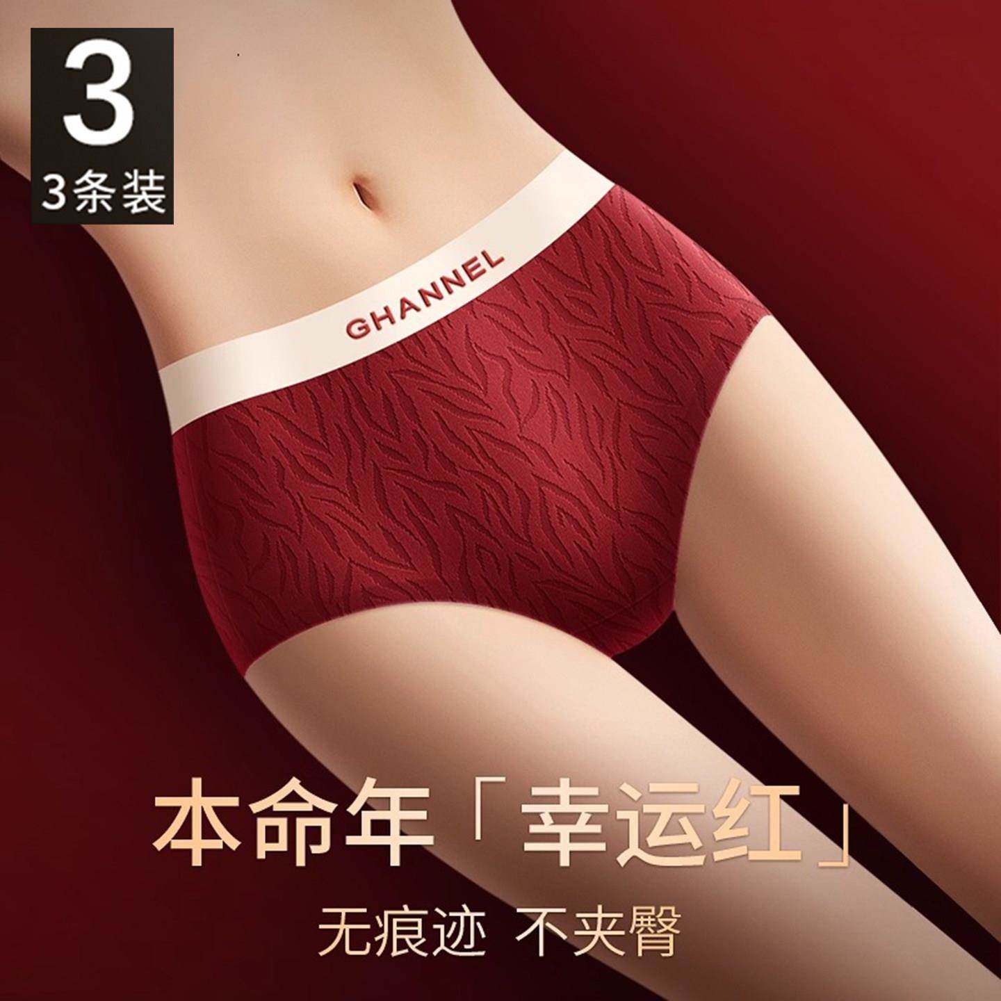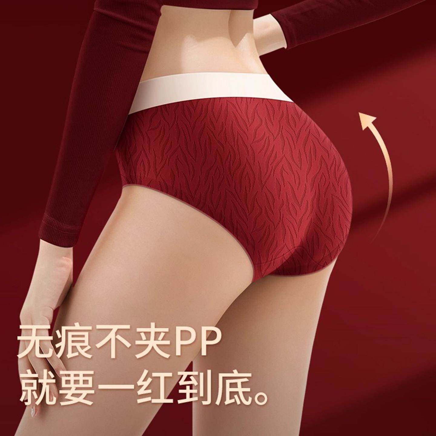📚 日本代购本命年无痕内裤女红色中腰纯棉裆2025新款不夹臀三角短裤